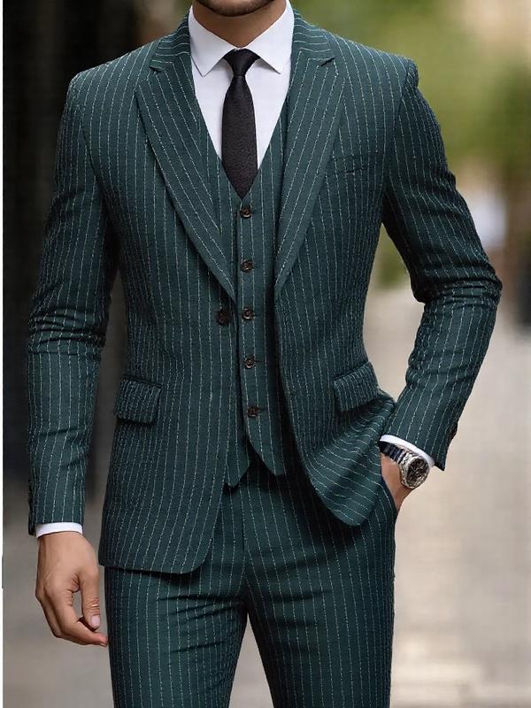 Men's Long Sleeve Slim Fit Pinstripe 3 - Piece Suit for Business Casual#fyp #ootd #spotlightfinds #fouyou #tiktokmademebuyit