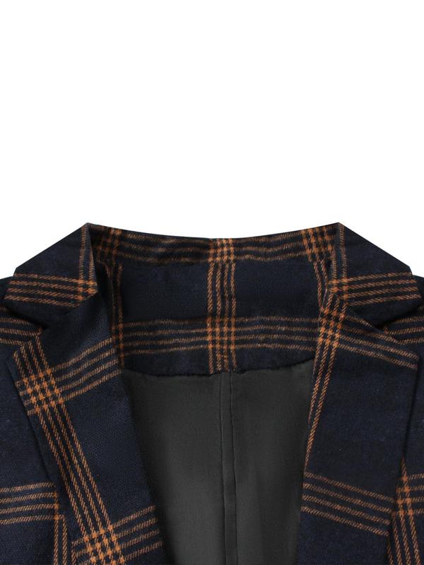 【Plaid Pattern】: Featuring a timeless plaid pattern, this jacket adds a visual interest that distinguishes it from standard solid-colored blazers.