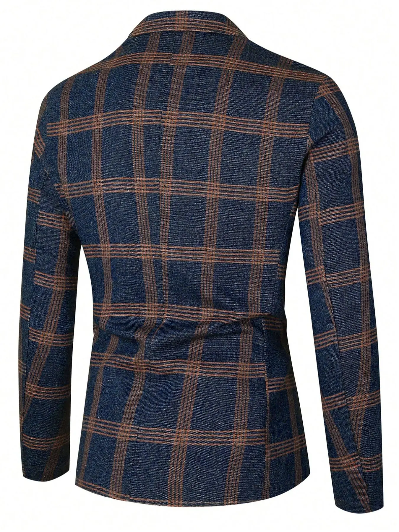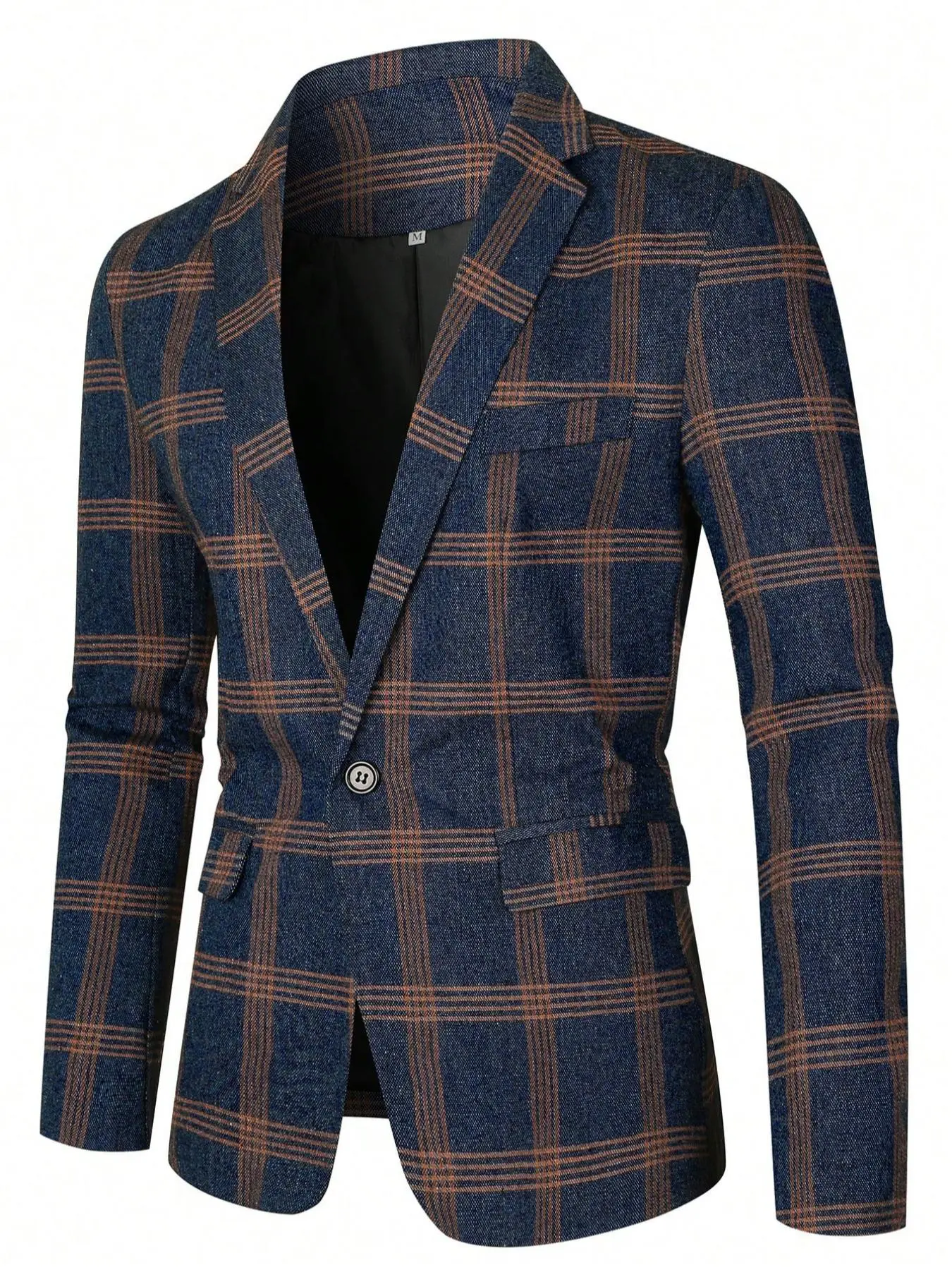 Men's Plaid Print Button Front Blazer, #Men#Plaid #Print #Button #Front#Blazer#Work#Cliothes#tor#Office#Regularfit#bone #sleeve #Lapel#NecklineSuit #Jacket #forBusiness#FormalOccasions, #Fashion #MenClothing #forFallWinter#Mensuitjacket#Mensuits