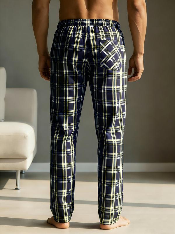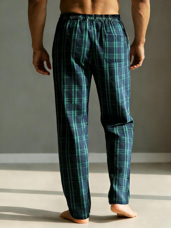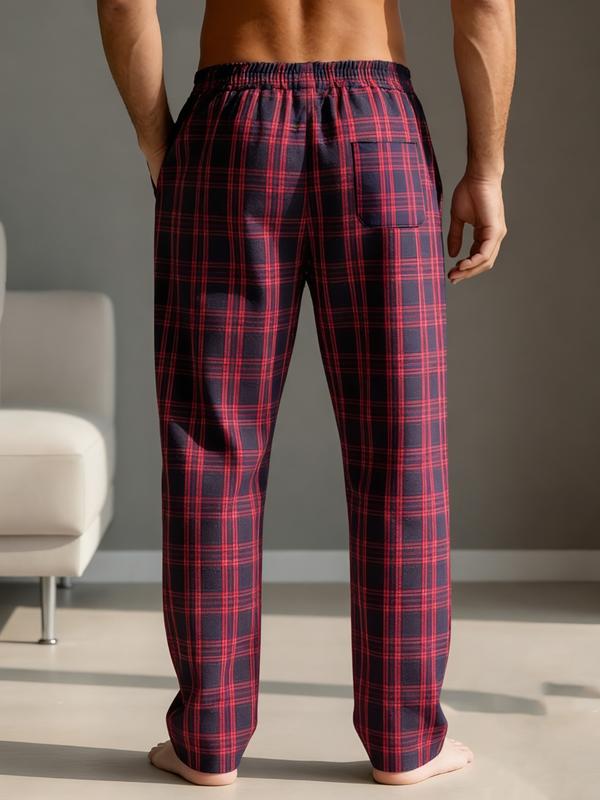 Men's Plaid Lounge Pants - Soft & Comfortable Sleepwear with Straight Cut and Drawstring Waist, Suitable for Daily Home Wear and Outdoor Strolls, Loungewear