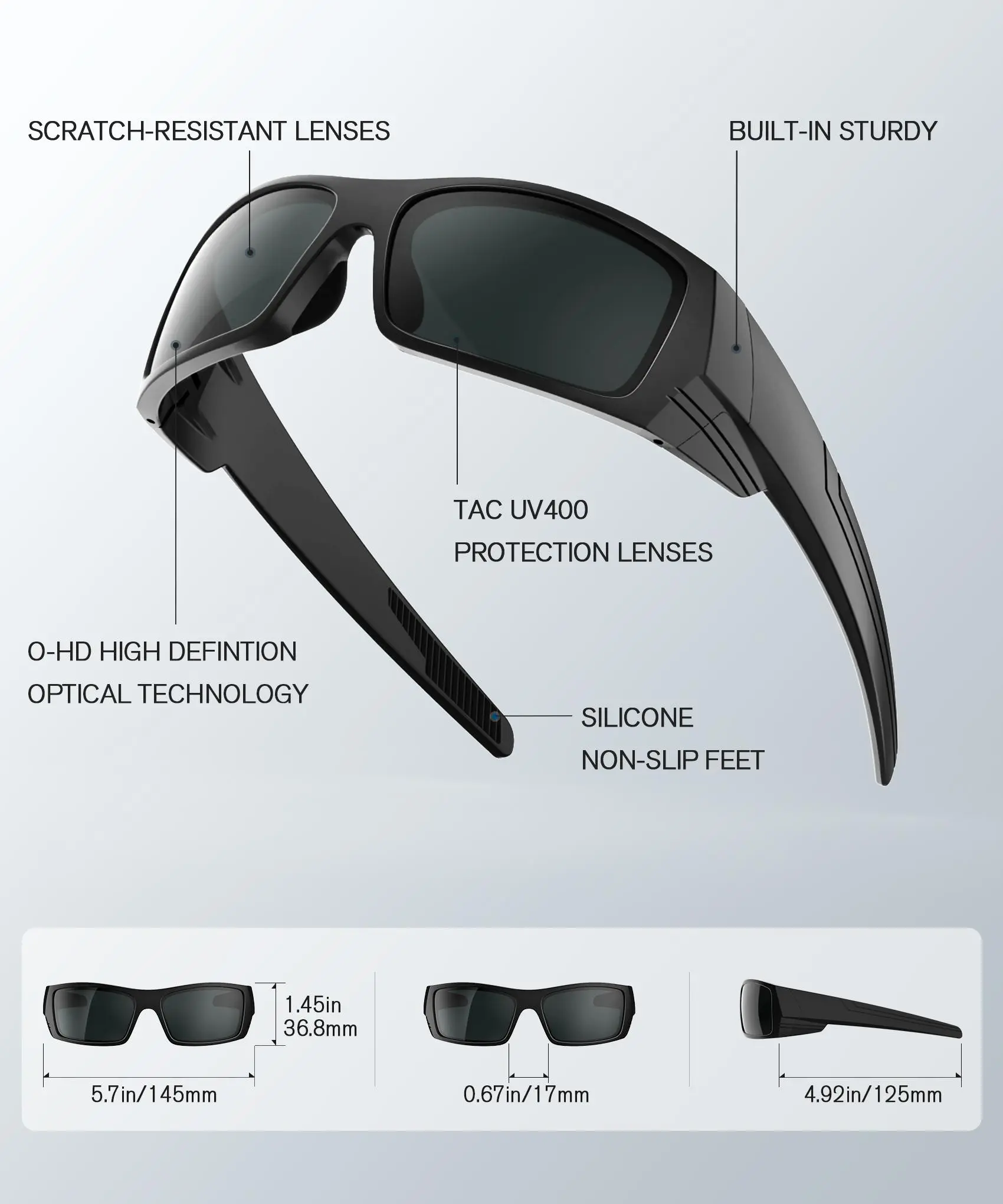 Optimized dimensions (1.45" lens height, 4.92" temple) ensure stable, low-profile fit for cycling/running.