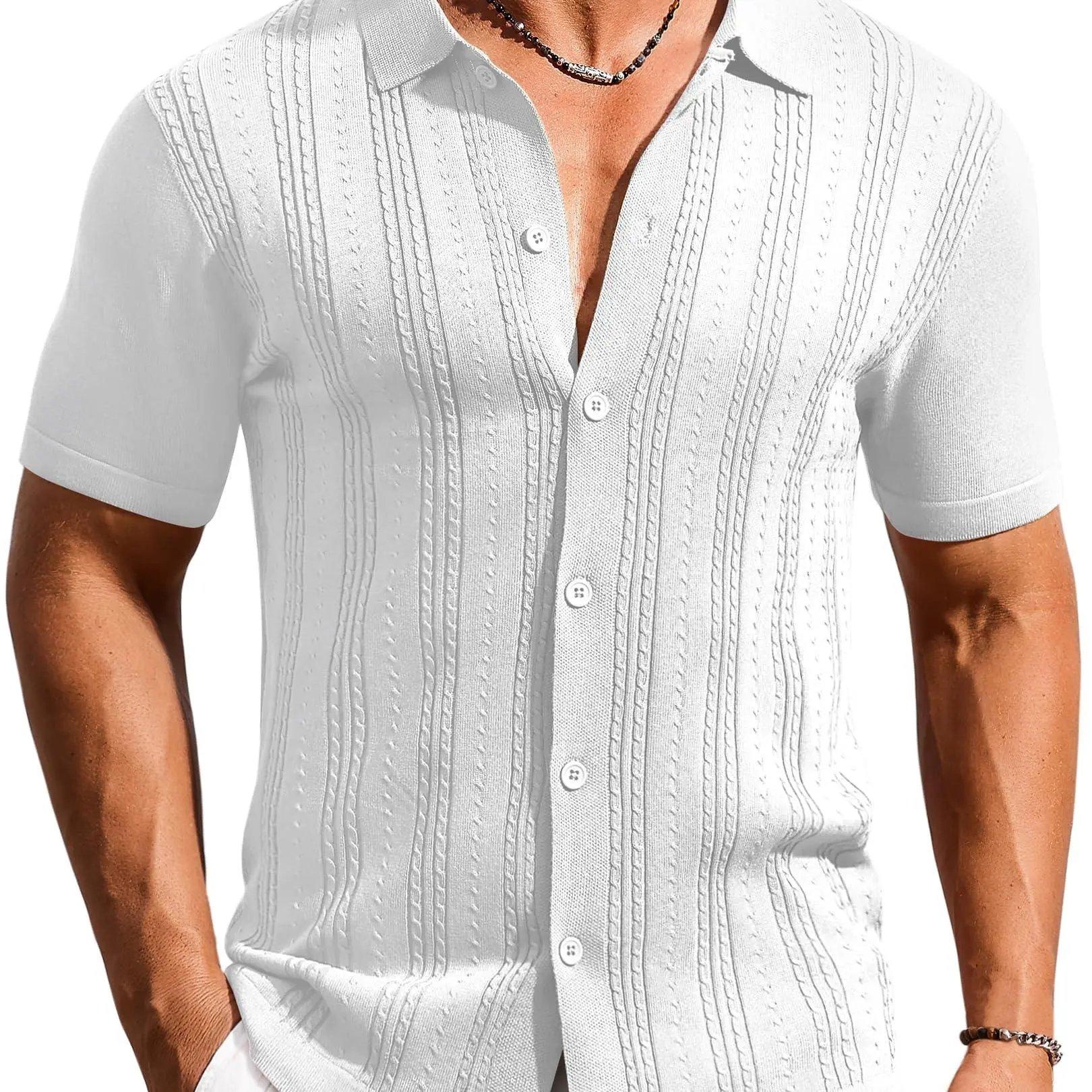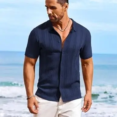 ·Versatile Occasions: This knitted button down shirt for men is perfect for a day at the beach, a romantic date night, a summer wedding, a pool party, traveling, vacationing, vintage-themed gatherings, city wear, golfing, or even semi-formal work occasions. It also makes for a fantastic surprise gift for Valentine's Day, Father's Day, Thanksgiving, Christmas, or New Year's Eve.