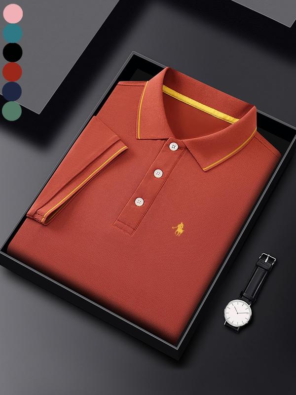 5. Men's Regular Fit Letter Embroidery Contrast Trim Polo Shirt, Casual Short Sleeve Half Zip Top for Summer, Fashion Men's Clothes for Daily Wear, Gamis, Solid Zipper Polo