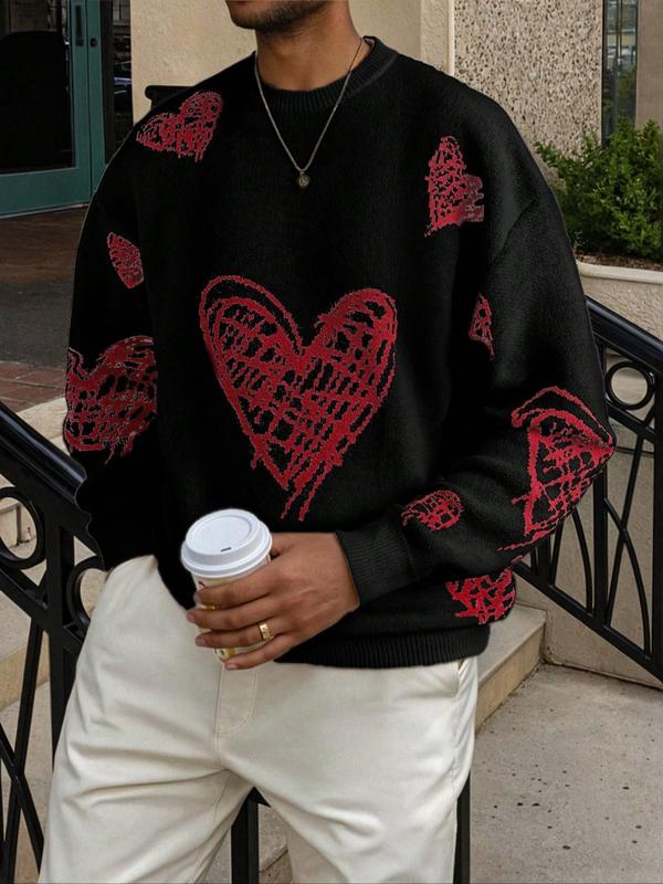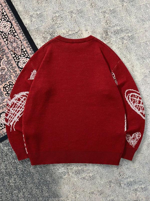 Cute Fall & Winter Unisex Casual Sweater with Love Heart Pattern, Loose-Fitting Long Sleeve Pullover for Valentine's Gift