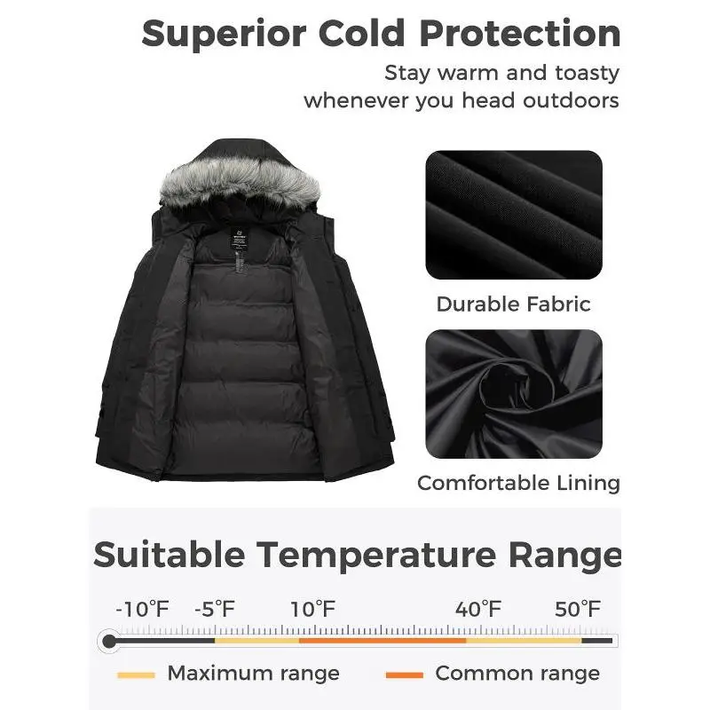 ·A Parka Jacket You Can Trust - The thick winter parka is tailored using heavy-duty buttons and zippers that can be secured without a hitch. The durable outer shell puffer coats for men features protect against tears and abrasions.