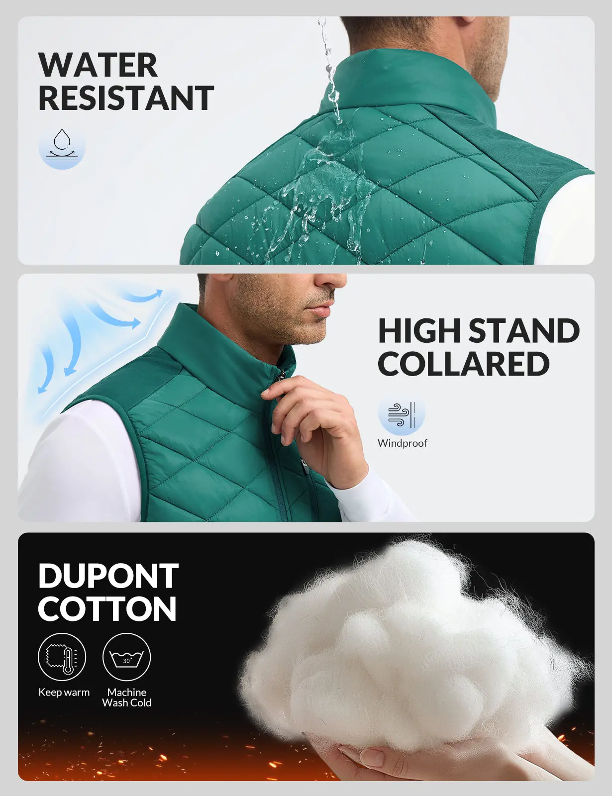 ·Warm & Windproof: Baleaf puffer vest men features 120 grams of DuPont Cotton Fill insulation and a high standing collar,to withstand winds and bring ultimate warmth and comfort to your body.