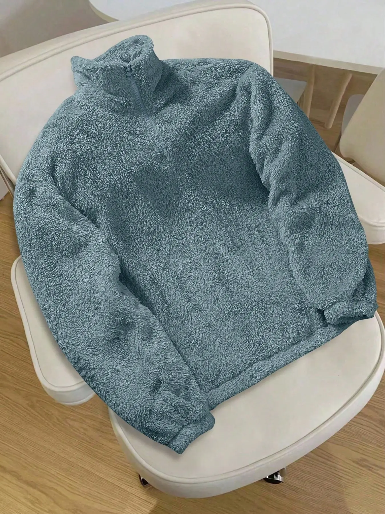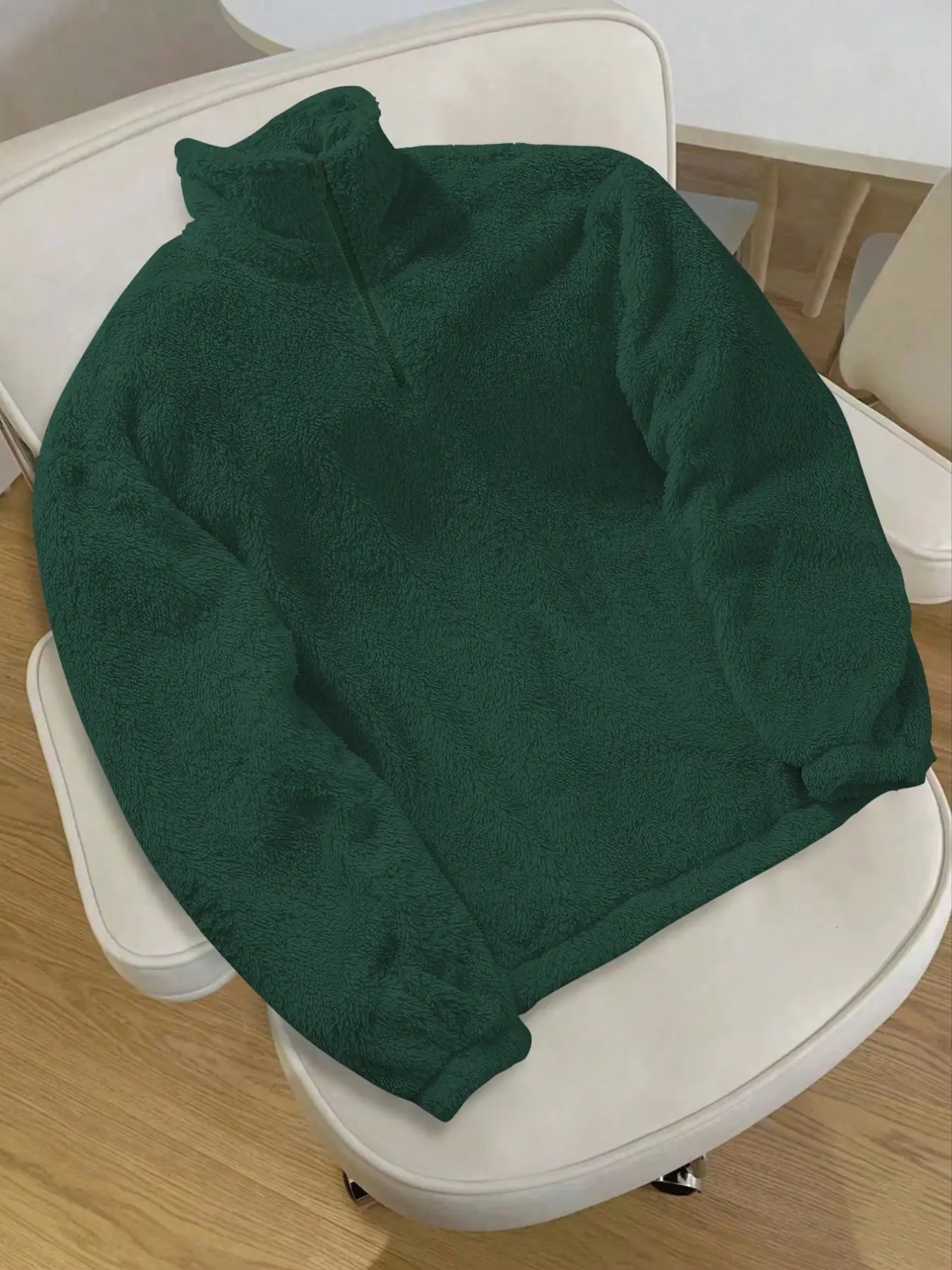 Men's Quarter Zip Fleece Pullover Sweatshirt, Solid Color Plain Long Sleeve, Casual Style, Perfect for Daily Wear and Outdoor Activities