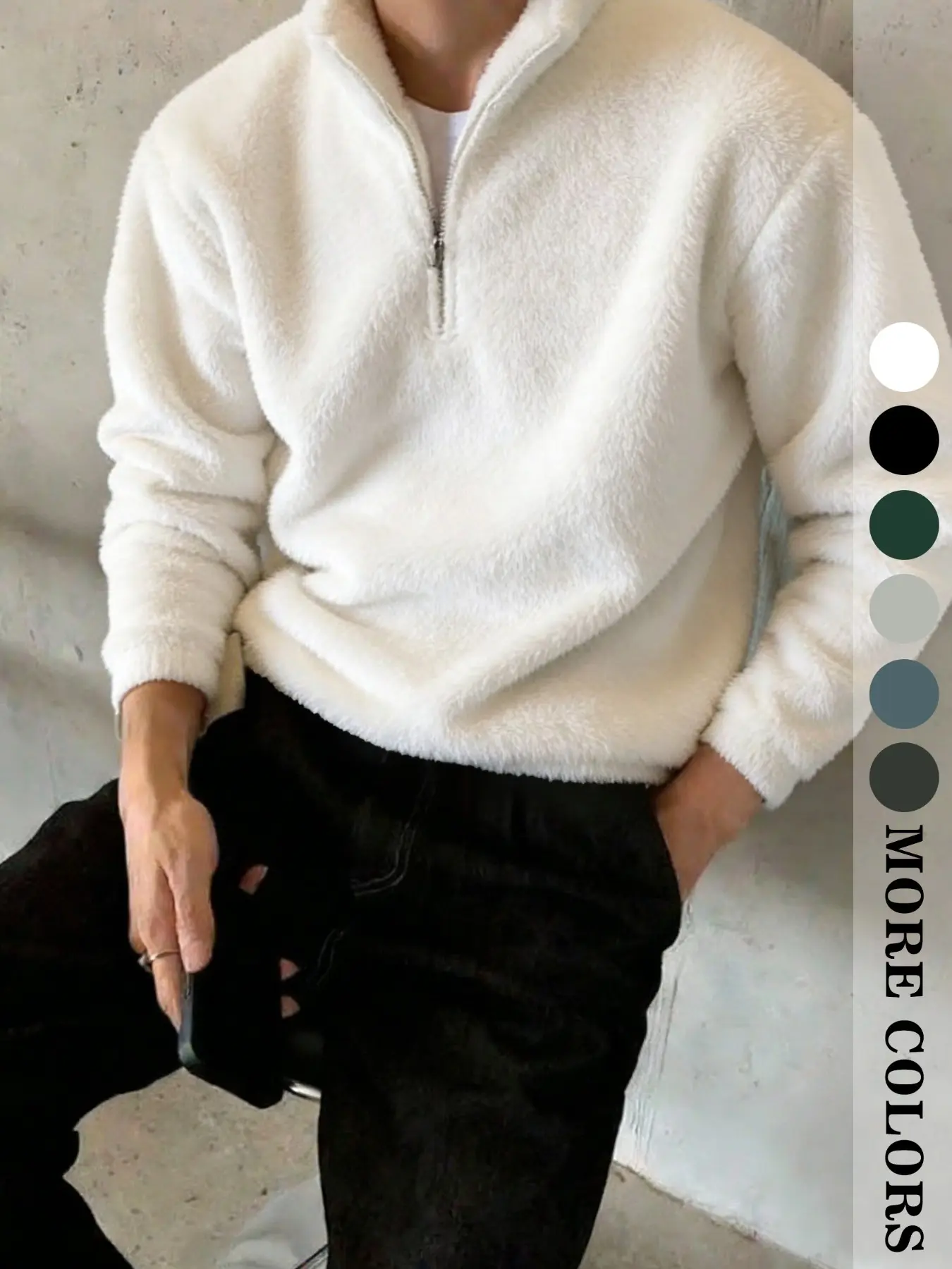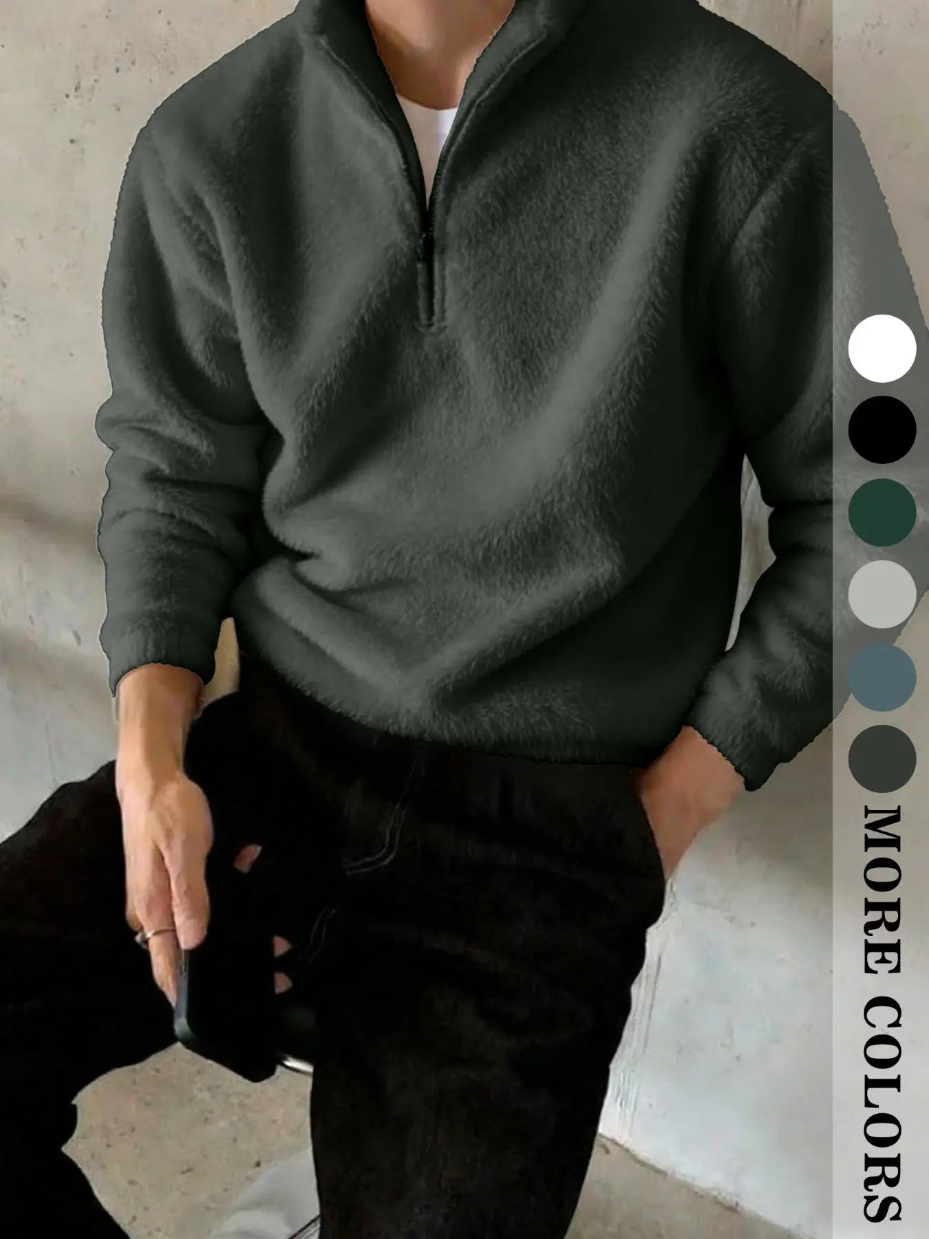 5. Men's Quarter Zip Fleece Pullover Sweatshirt, Solid Color Plain Long Sleeve, Casual Style, Perfect for Daily Wear and Outdoor Activities