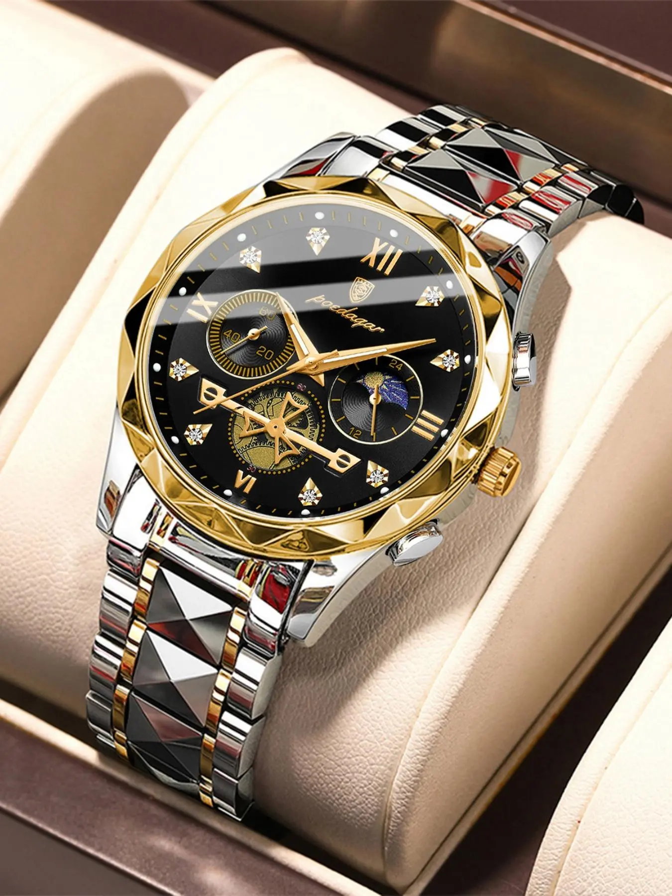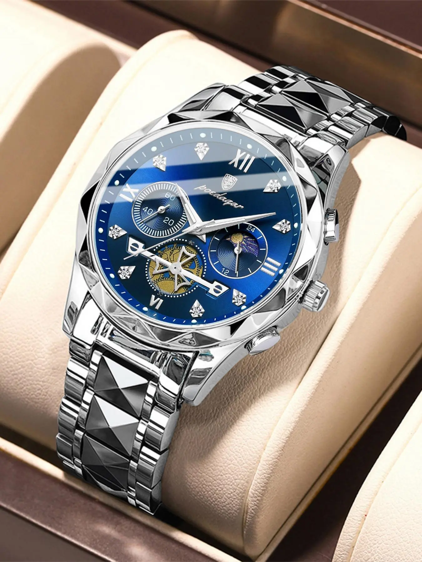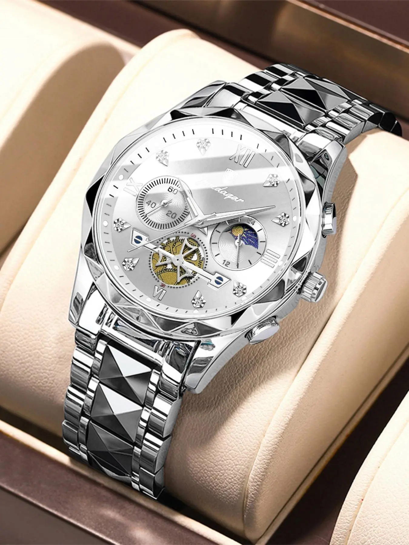 Got this watch for a gift to my son for his 16th. It looks great and upgrades his current watch!!! It is heavy duty stainless steel and shines bright in the light!!! The white design is phenomenal!!!! 10/10 for quality, design and price!!! I definitely recommend getting one!!! Perfect anytime gift!!