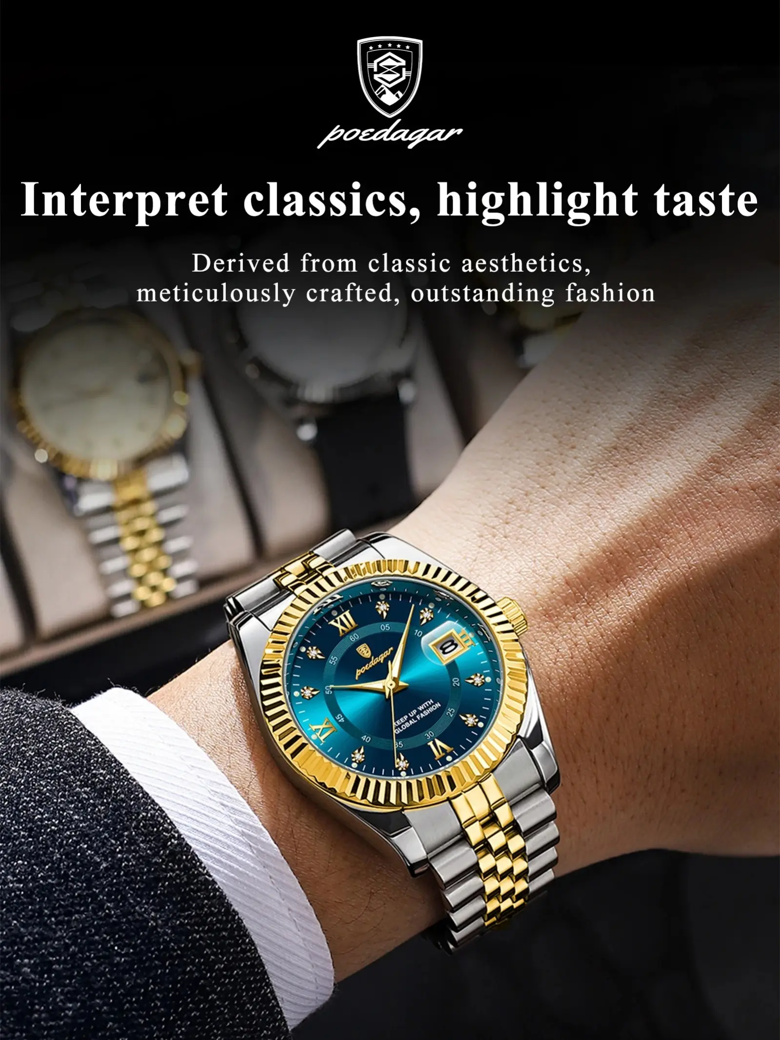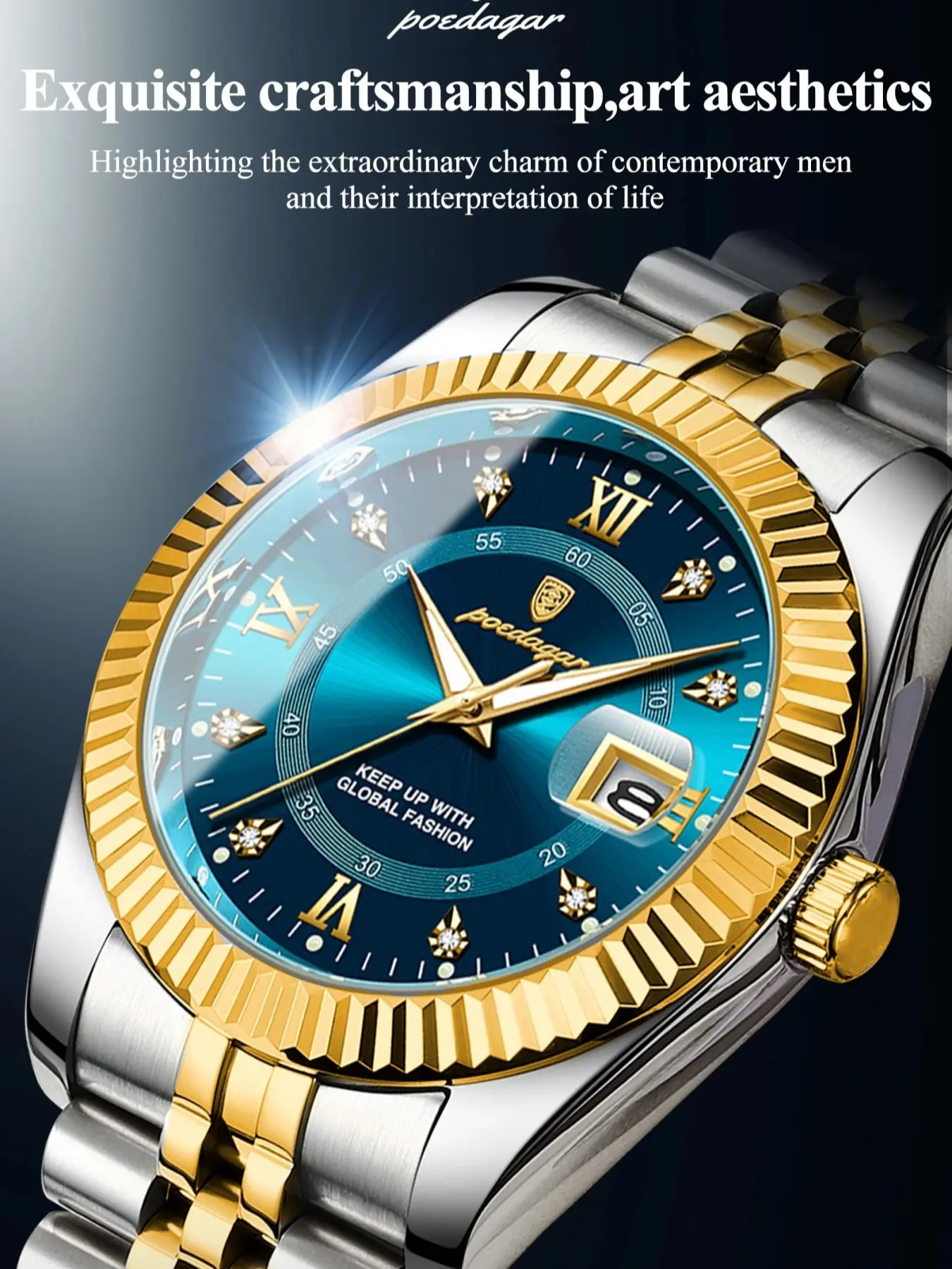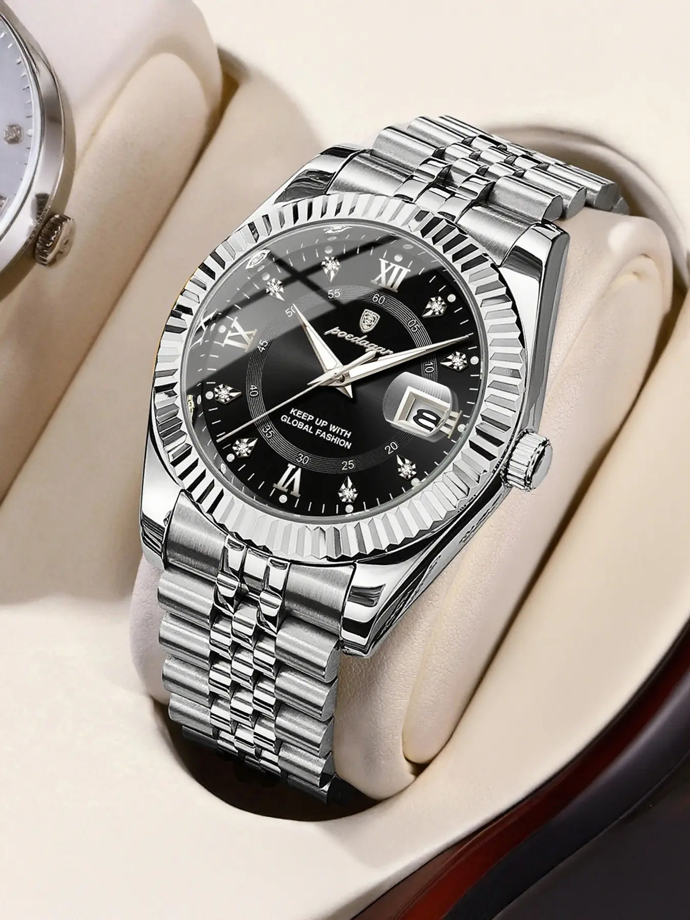 Package came in pretty quick. Watch is good looking and looks like i spent $600 on it. Great quality. And what the didn’t say is it has glow in the dark bulbs around the numbers. Very chic.
