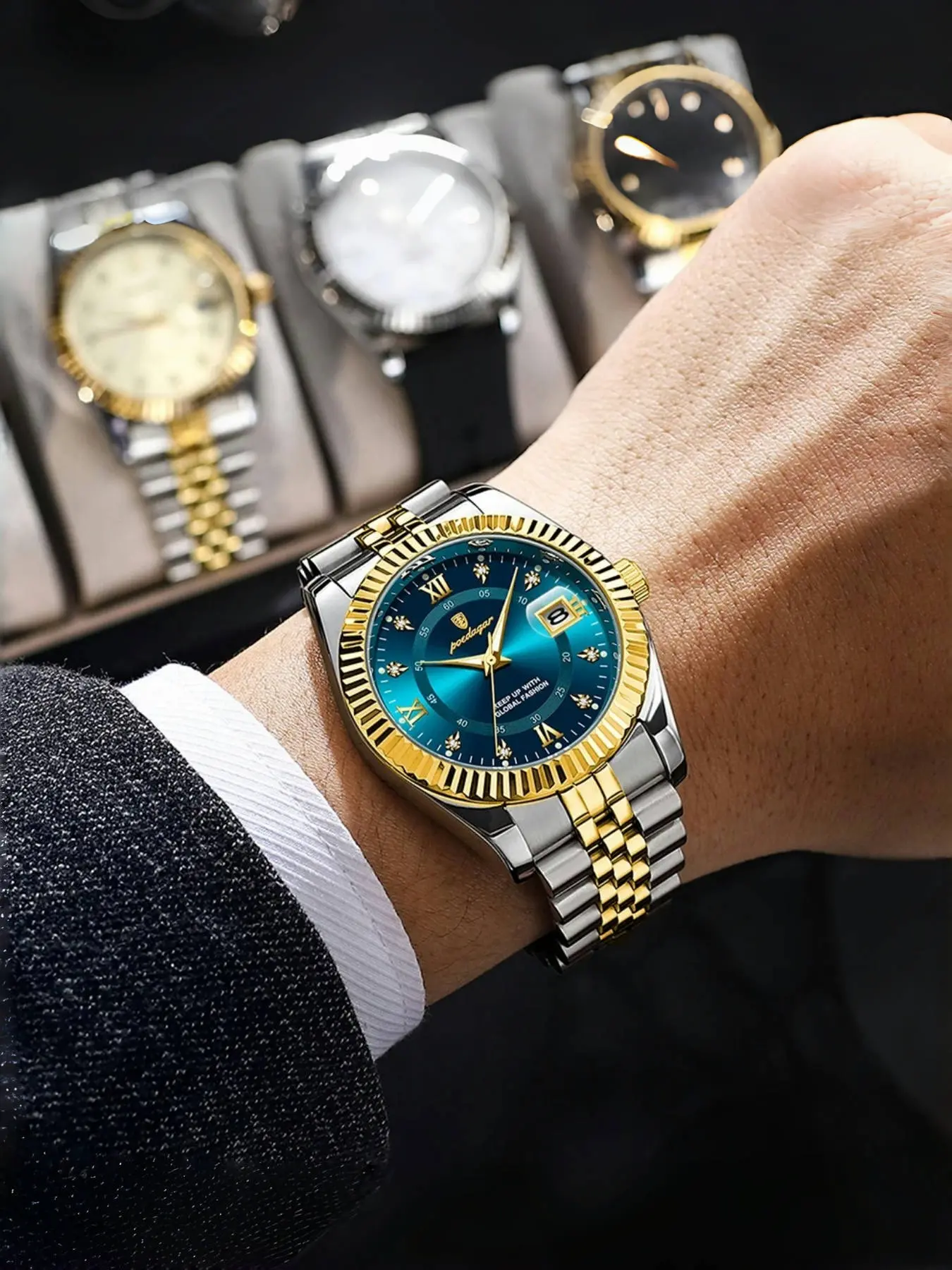 Love this watch! The rose gold looks clean and classy, and the blue face really pops. Feels solid and has a nice weight to it. Great for both casual and dressy fits. I’ve already gotten compliments. Way more quality than I expected for the price!