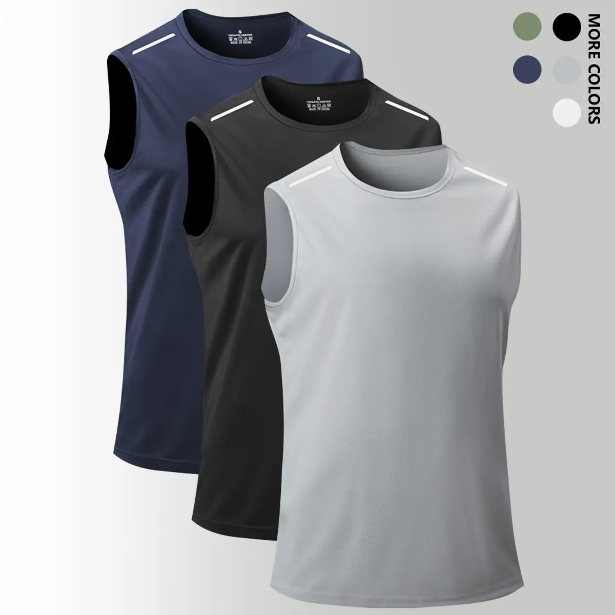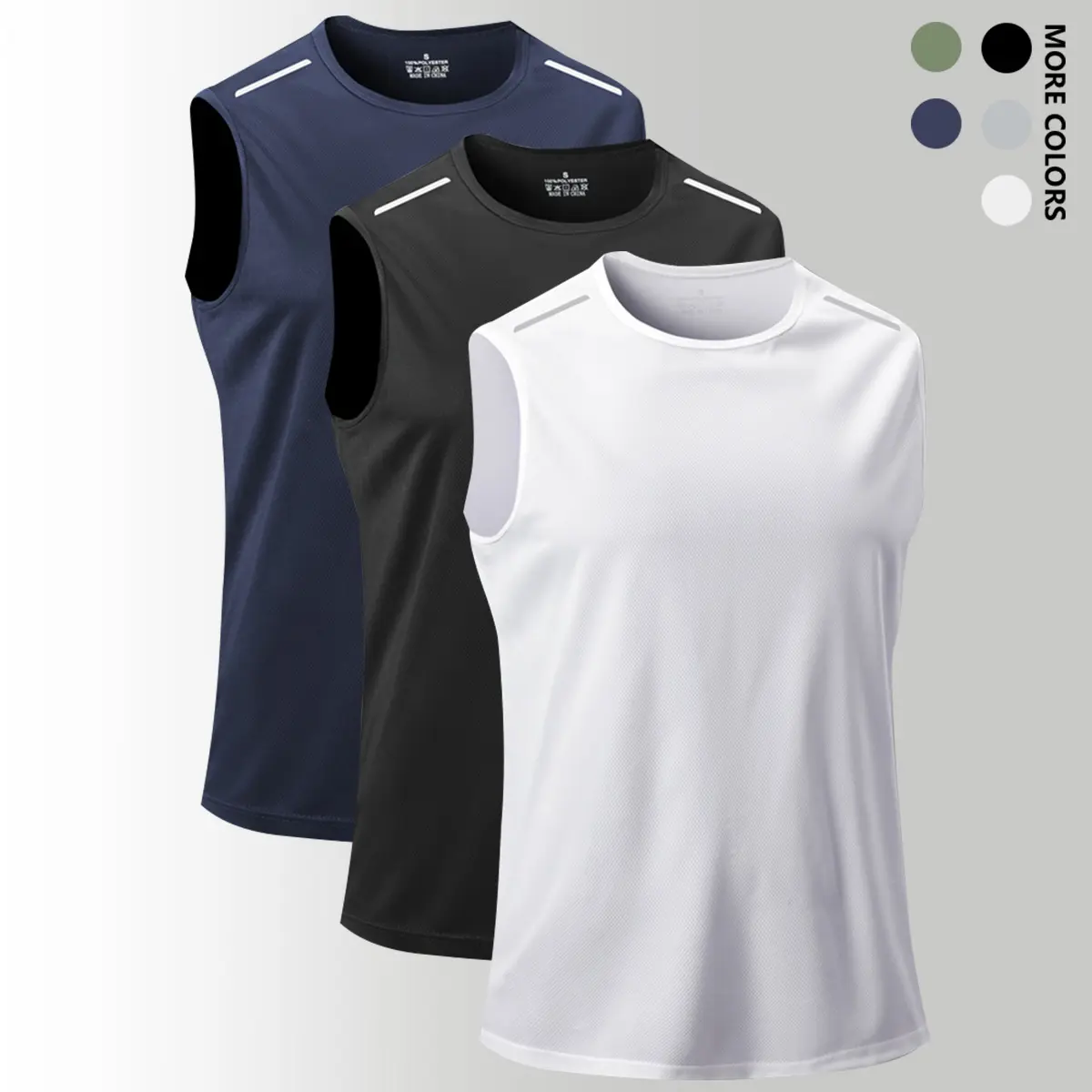 This sleeveless round neck vest is designed for men engaging in outdoor sports. It features a quick-dry and breathable fabric, ideal for maintaining comfort during intense workouts. The reflective stripe adds visibility, enhancing safety in low light conditions. This versatile piece is a must-have for your fitness wardrobe.