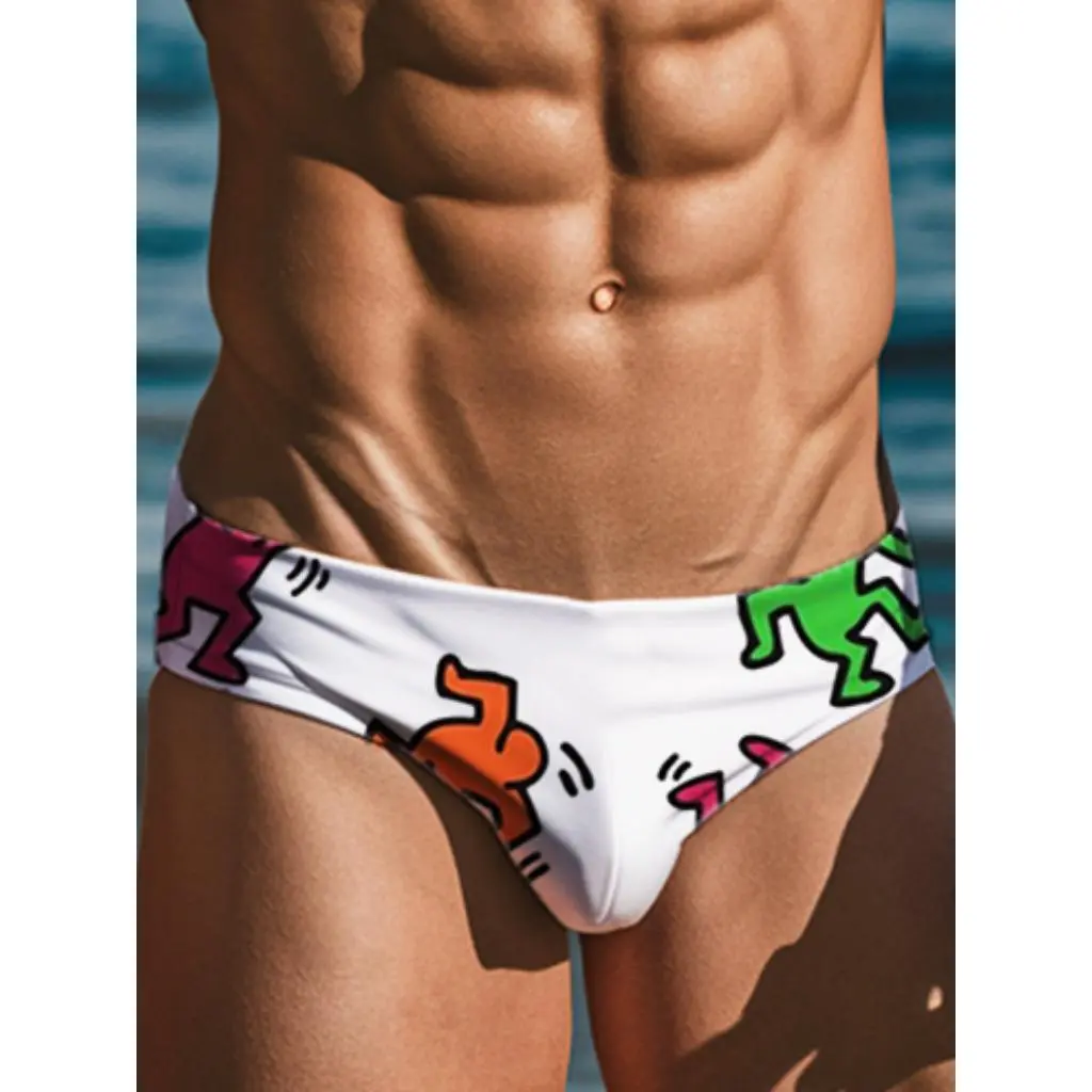 Mens Keith Haring pop art printed summer swim brief vibrant colorful design lightweight quick dry fabric perfect for beach pool vacations lounging or resort wear comfortable stretchy fit stylish graphic swimwear essential for summer SpringStatements