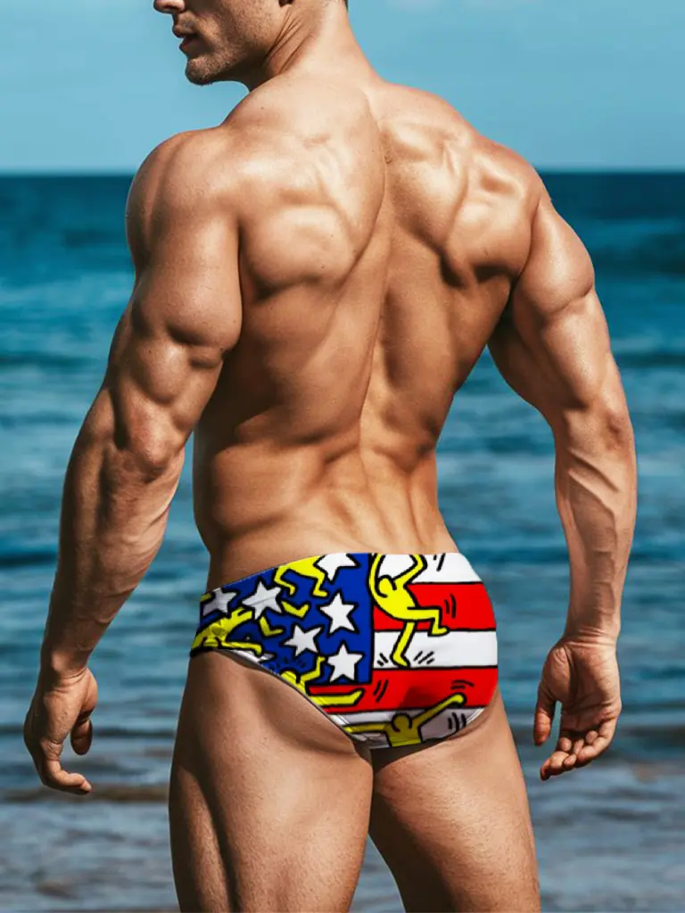 5. Mens Keith Haring pop art printed summer swim brief vibrant colorful design lightweight quick dry fabric perfect for beach pool vacations lounging or resort wear comfortable stretchy fit stylish graphic swimwear essential for summer SpringStatements