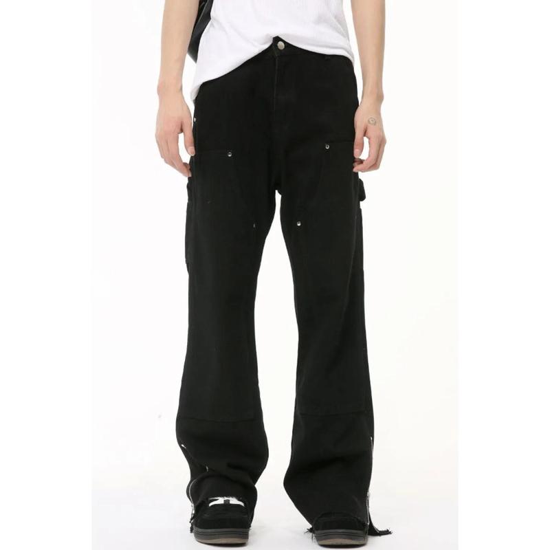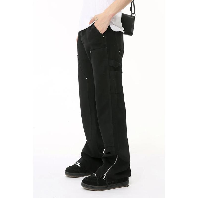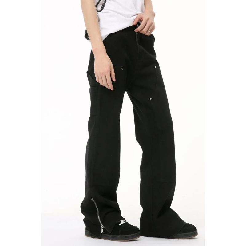 Men's Raw Hem Bootcut Jeans with Zip-Up Sides
