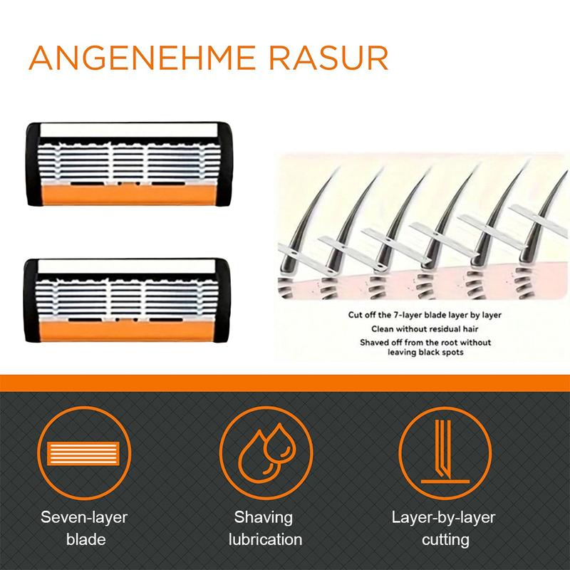 Unlike traditional razors, we've engineered 72 ultra-thin, high-density blades. This design allows for significantly less shaves, as the blade glides through the hair with ease, snapping it off at the root for unprecedented smoothness. Every shave is efficient and thorough, leaving you with no residual stubble, keeping you fresh and tidy around the clock.