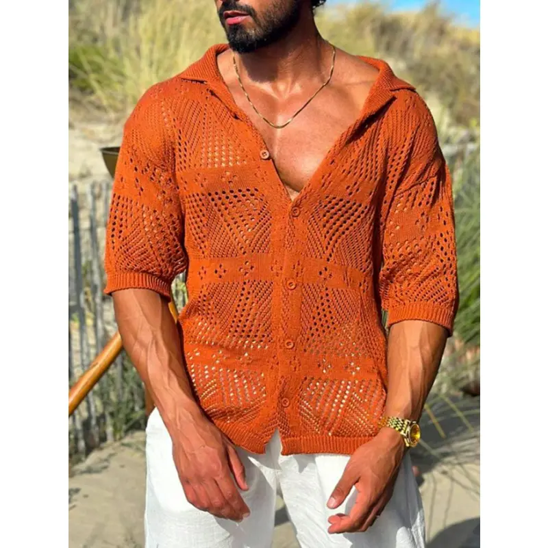 Men’s crocheted button-down shirt from TikTok shop! #ootd #styleinspo #ttstastemakers #tiktokmademebuyit #knitShirt #mensstyle