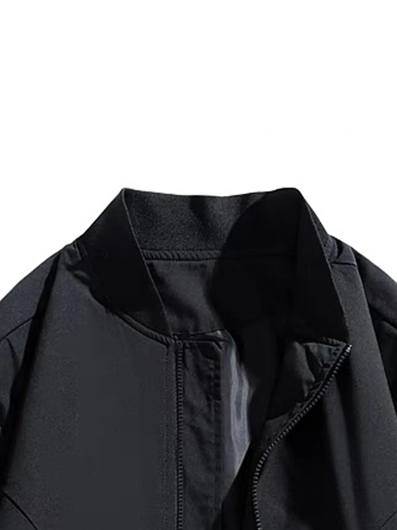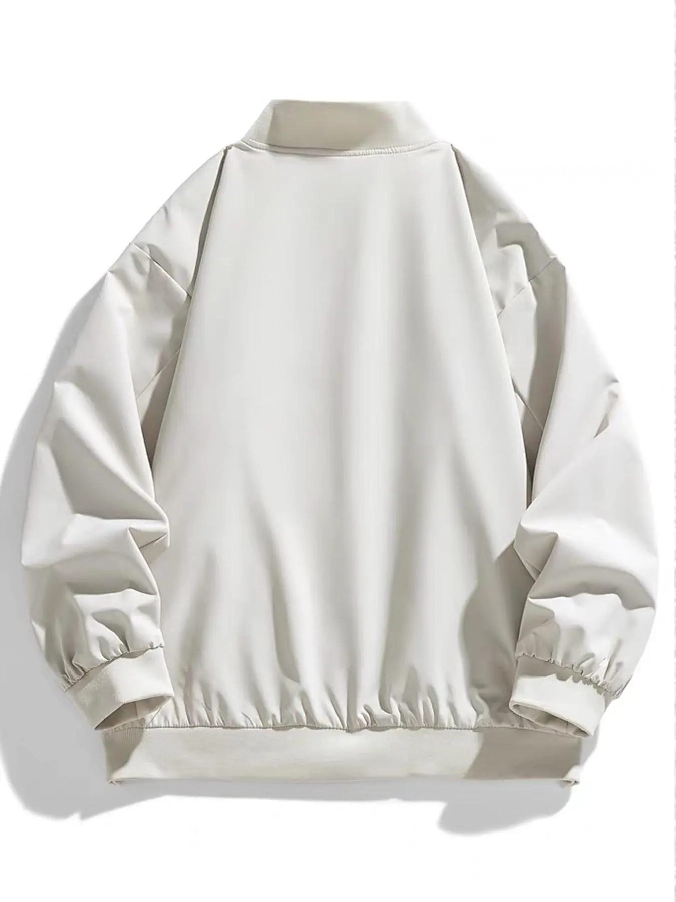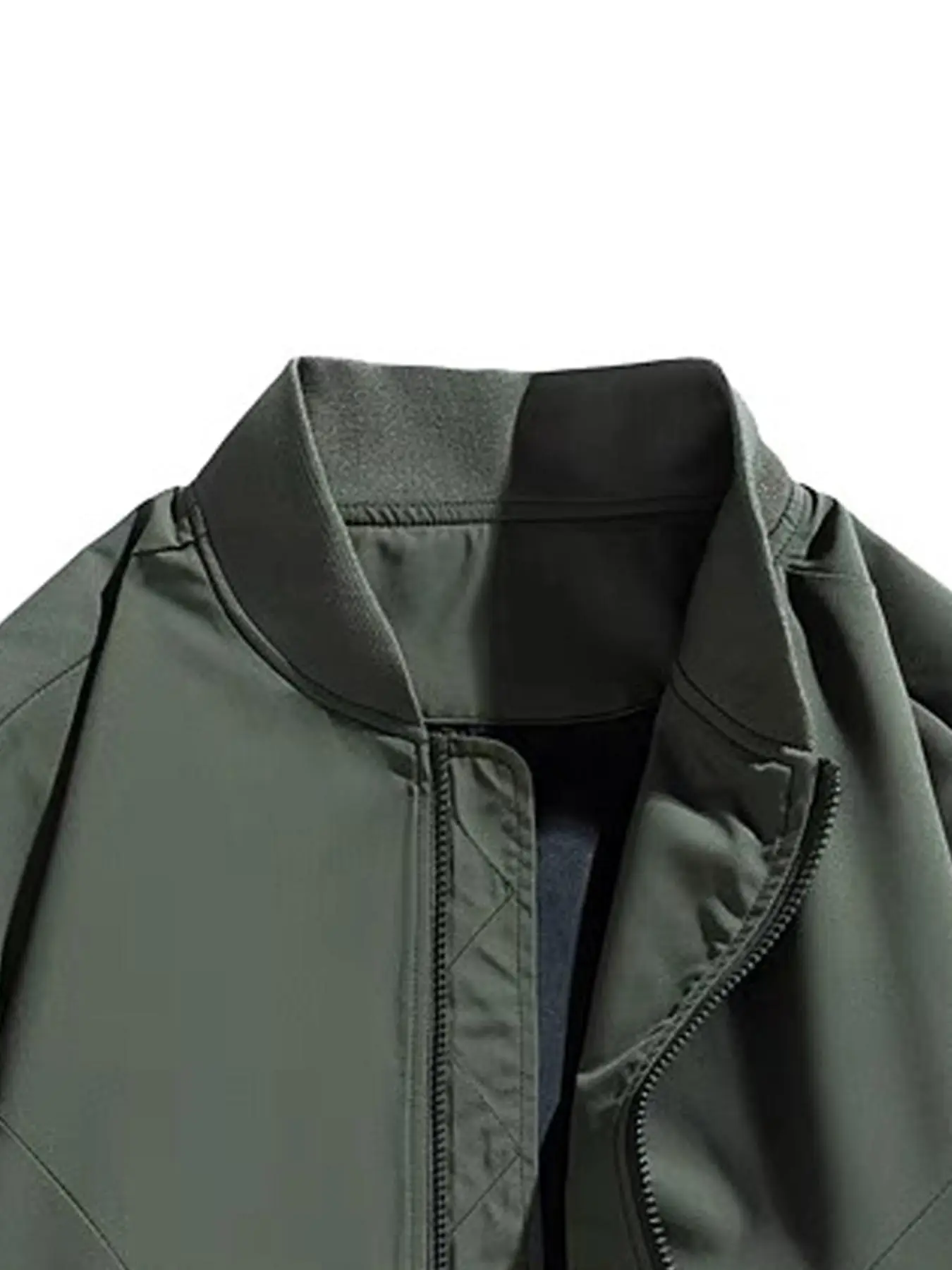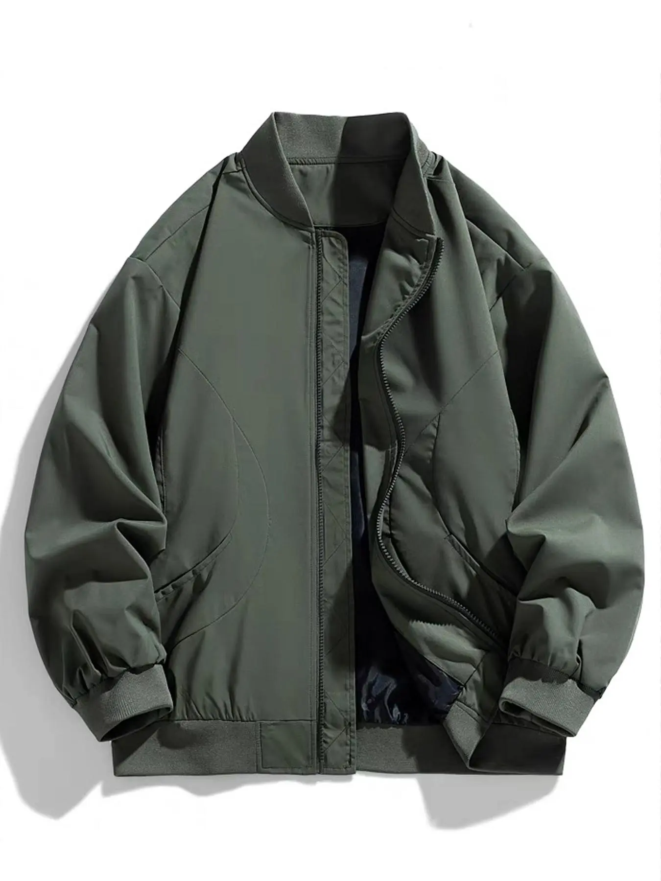 Men's Regular Fit Solid Baseball Collar Zip Up Jacket, Casual Fashion Comfy Lightweight Outerwear for Spring & Fall, Men's Clothes for Daily Wear, Coats, Menswear