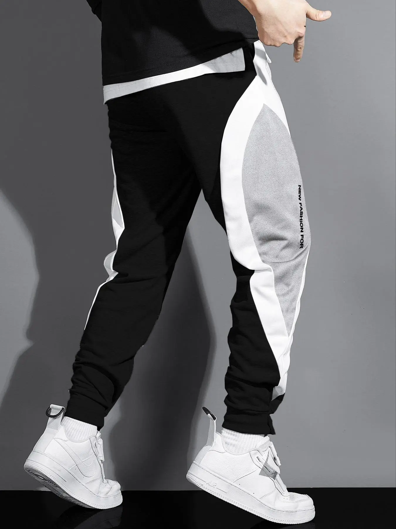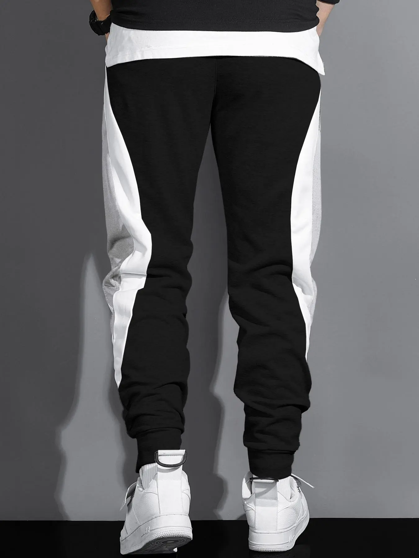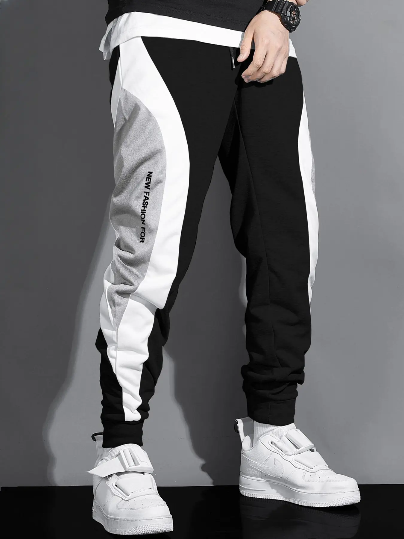 Men's Regular Fit Splicing Color Drawstring Waist Sweatpants