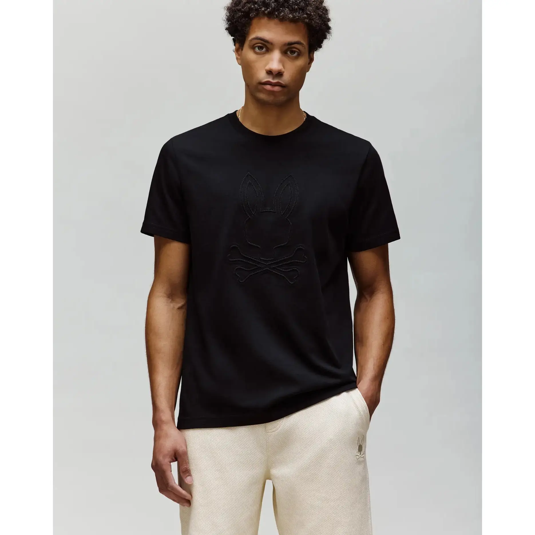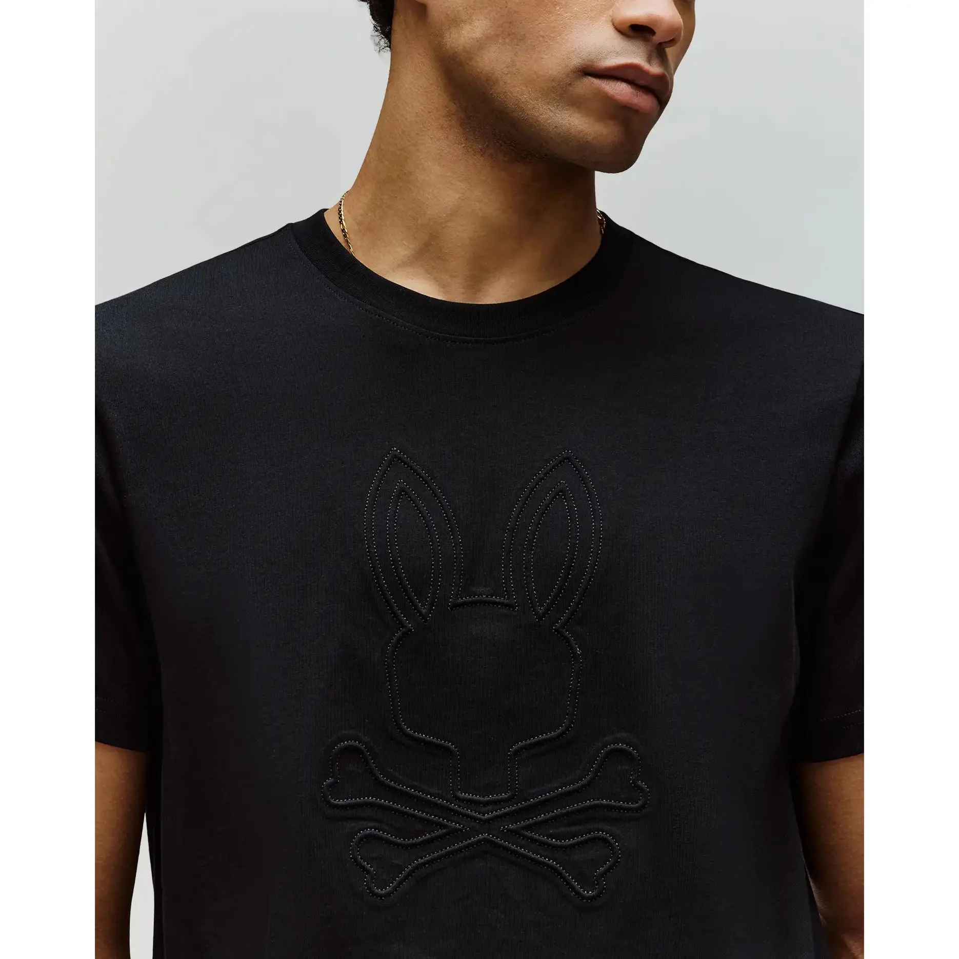 Leave an impression with the Remy Graphic Tee. Knit from 100% Pima cotton for natural flexibility and resistance and embroidered with a subtle center Bunny logo. Knit - 100% Pima cotton Made in Peru Regular fit Embossed and embroidered Bunny Model height is 6'1 (approx. 185cm) and is wearing a size medium.