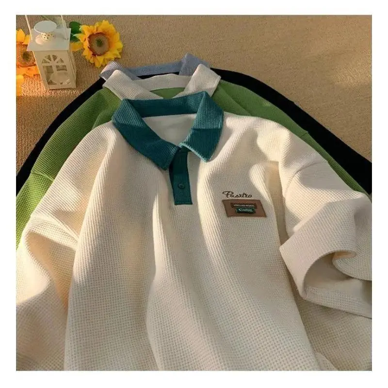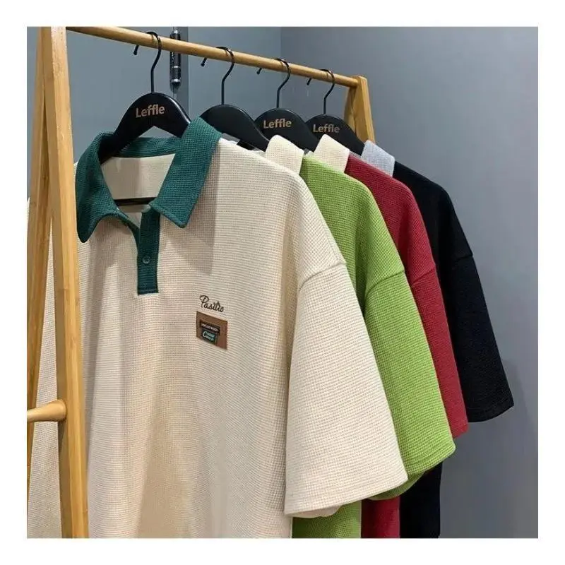 Men's Retro Polo Shirt | Loose Fit Heavy Cotton Tee | Casual Short Sleeve Top | Comfortable Vintage Style Half Sleeve