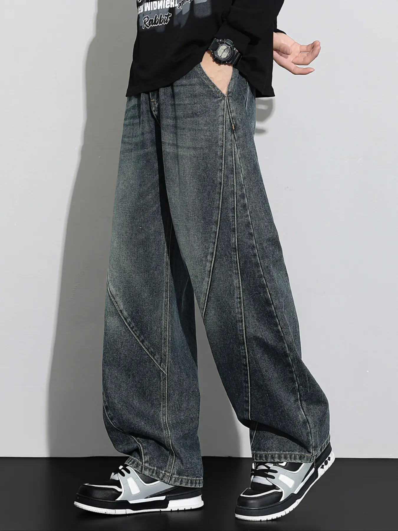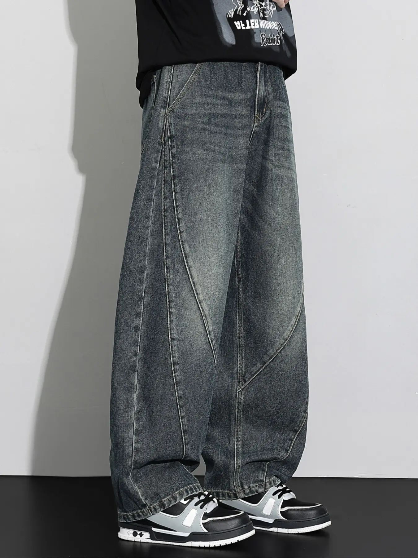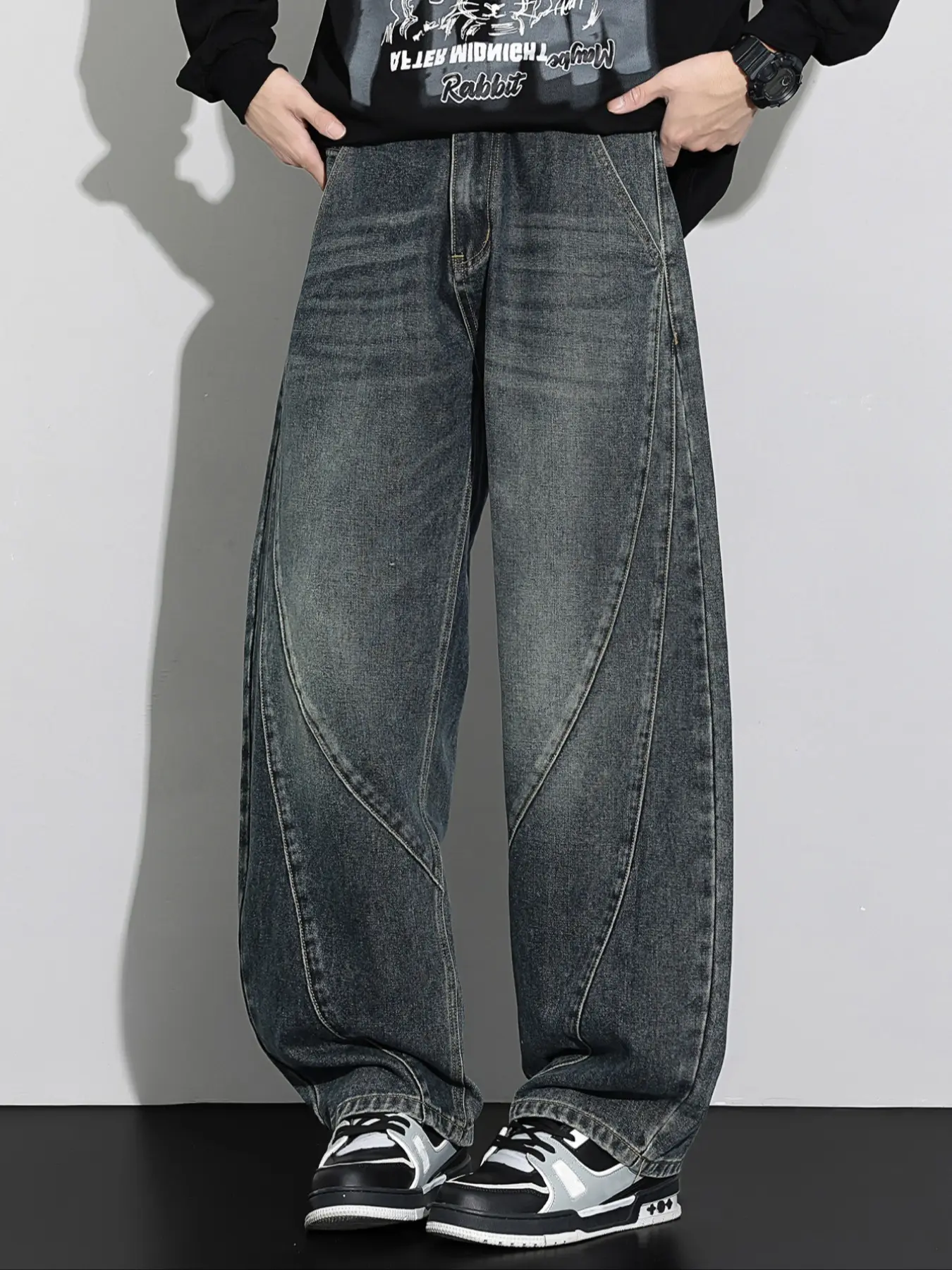 Men's Retro Washed Denim Jeans, Long Loose-Fit Y2K Street Style, All-Season Zipper Fly Pants, Perfect Gift for Boyfriend/husband