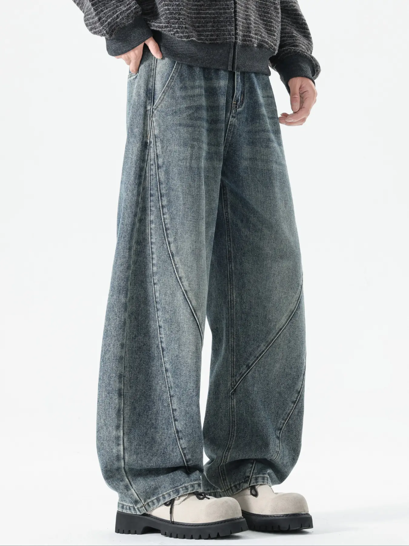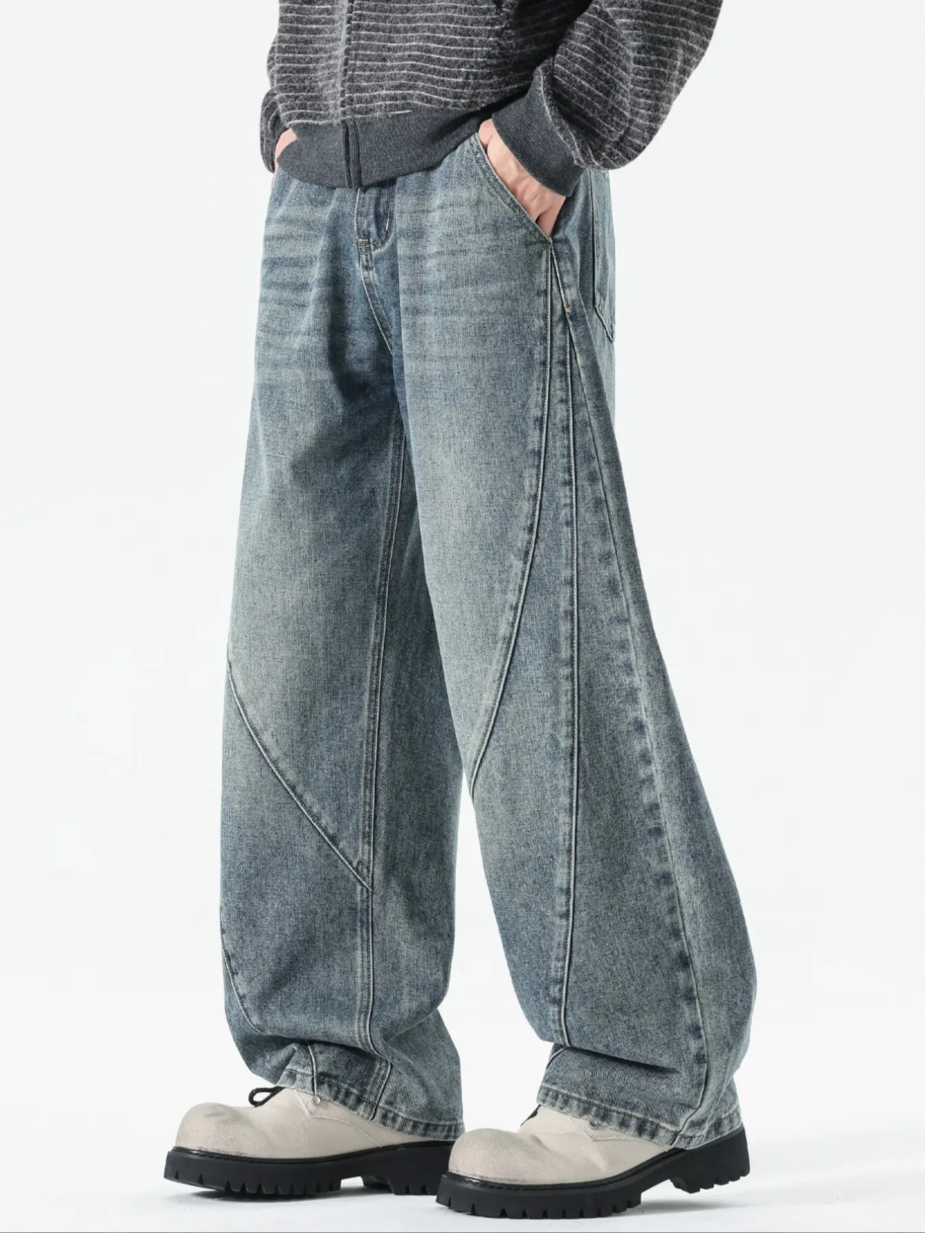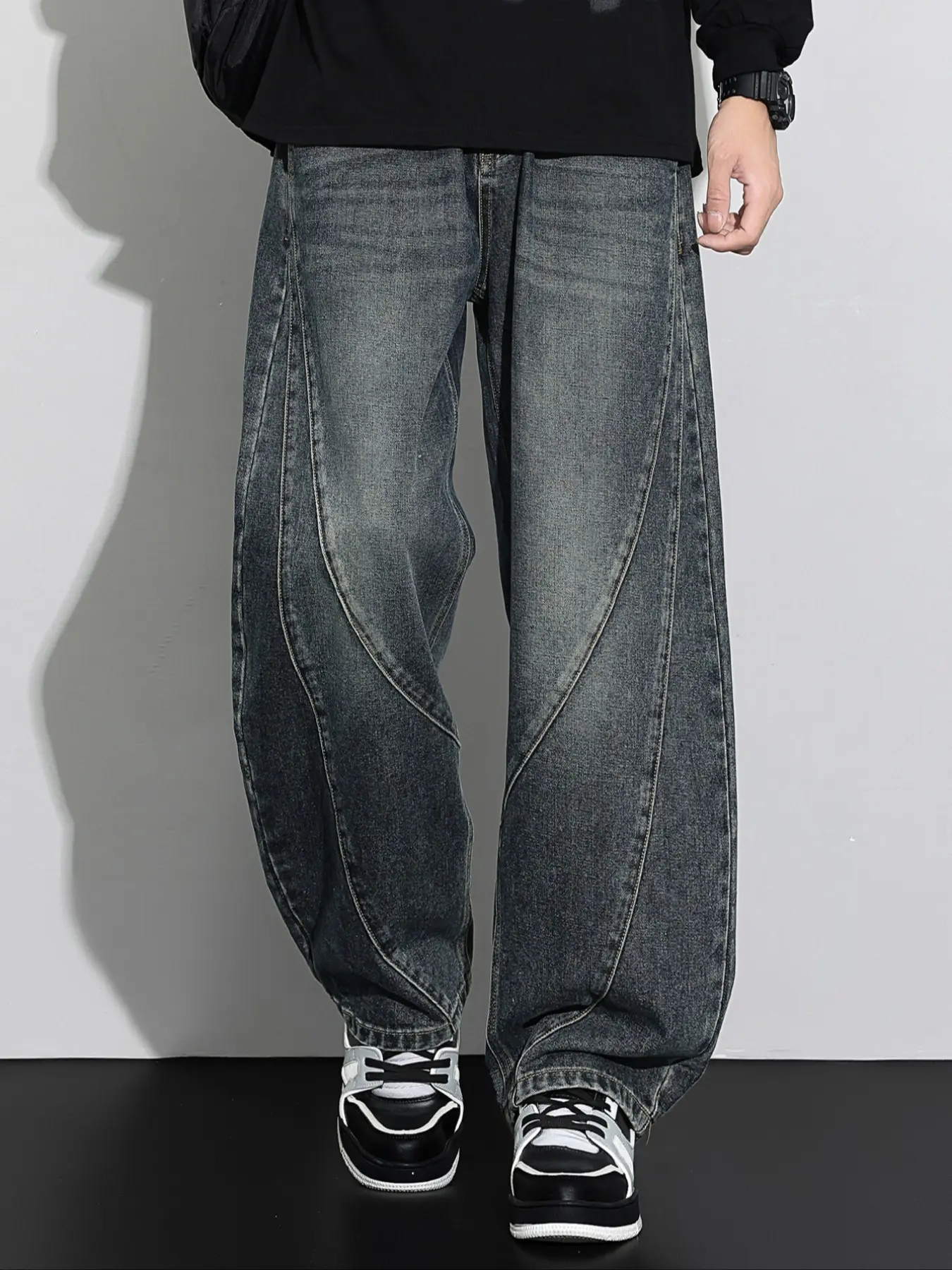 Men's Retro Washed Denim Jeans, Long Loose-Fit Y2K Street Style, All-Season Zipper Fly Pants, Perfect Gift for Boyfriend/husband