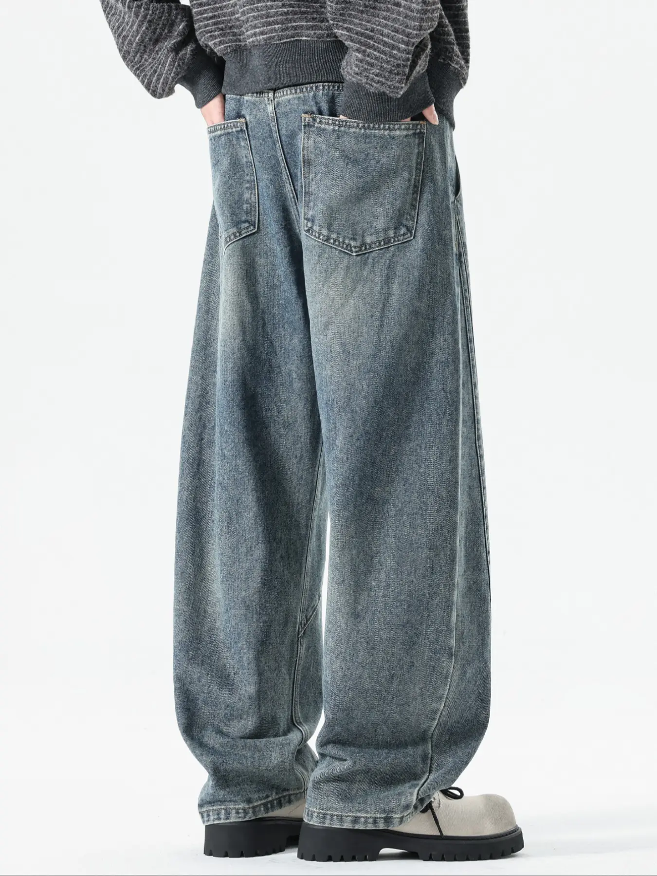 5. Men's Retro Washed Denim Jeans, Long Loose-Fit Y2K Street Style, All-Season Zipper Fly Pants, Perfect Gift for Boyfriend/husband