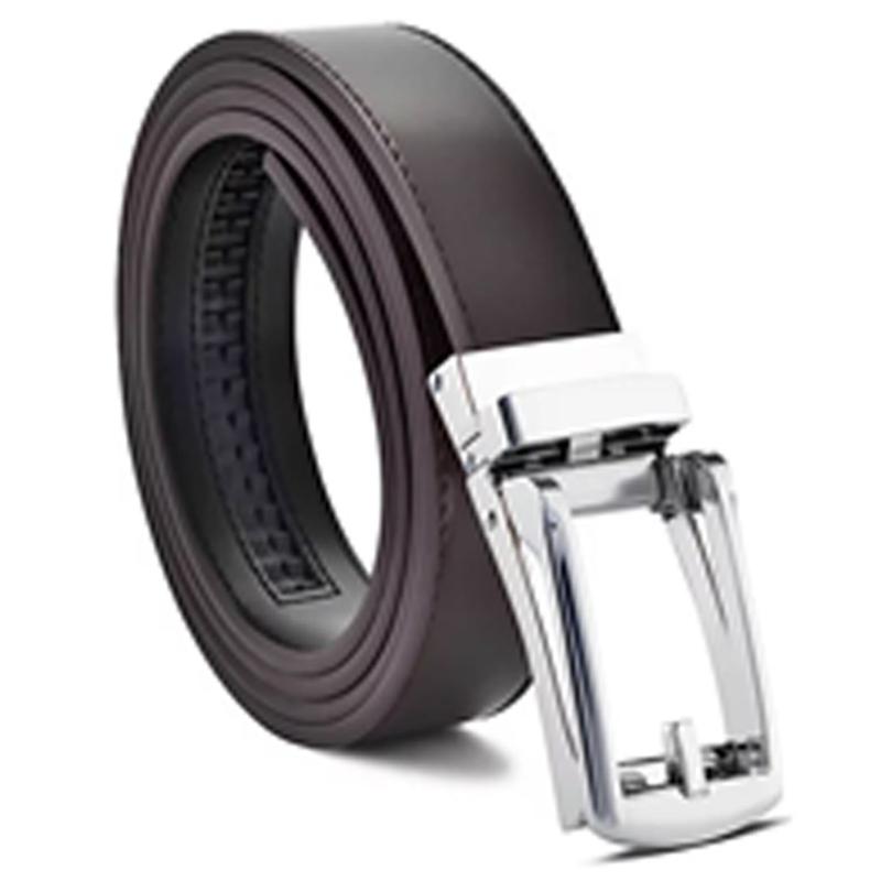 (Leather PU Ratchet) Brown-Silver Buckle