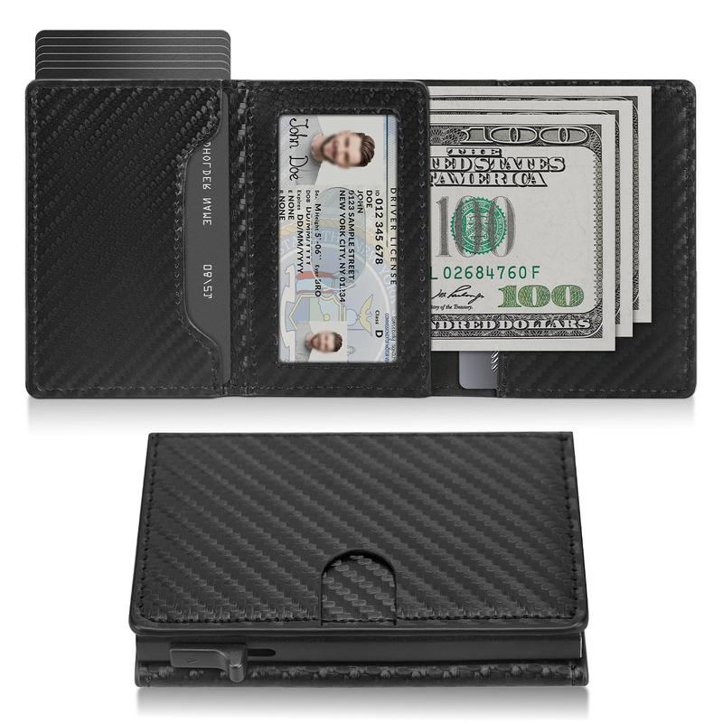 GSOIAX Men's Carbon Fiber Slim Wallet RFID Blocking with Gift Box