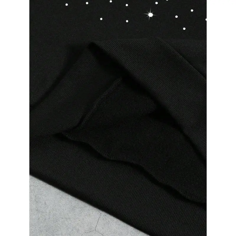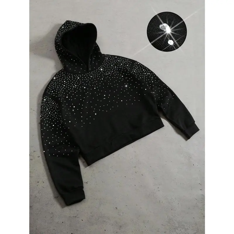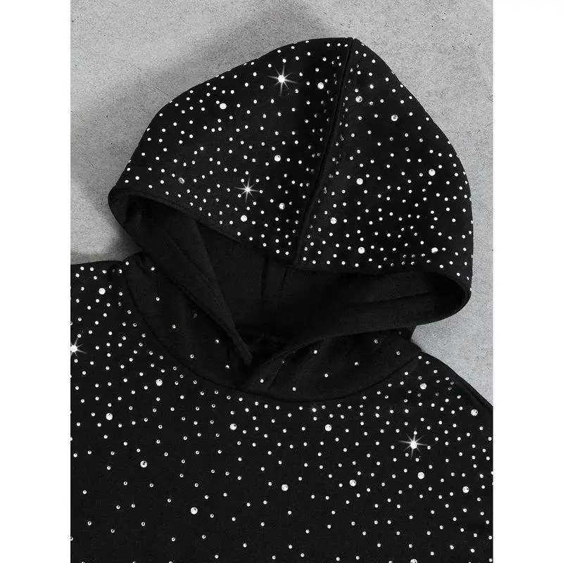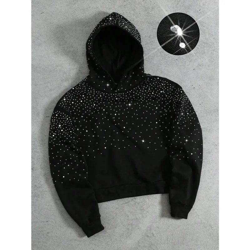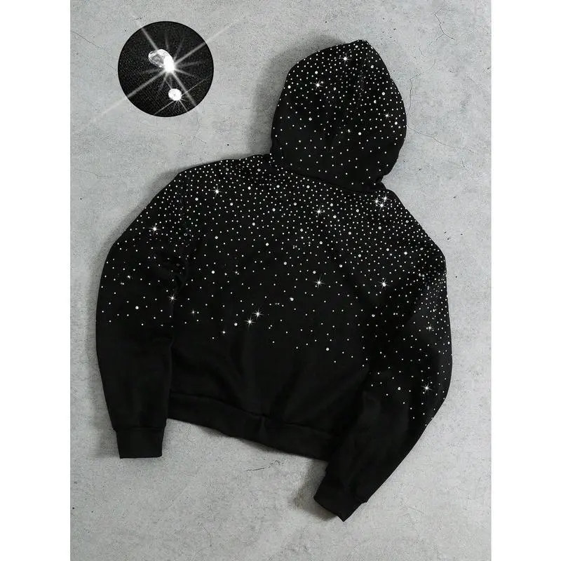 Men's Rhinestone Embellished Loose Fit Casual Pullover Hoodie Sweatshirt Rhinestone Hoodie Diamond Hoodie Cropped Hoodie Star Hoodie Crystal Hoodie, A Great Gift For Your Boyfriend, Back To School Black Rhinestone Hoodie