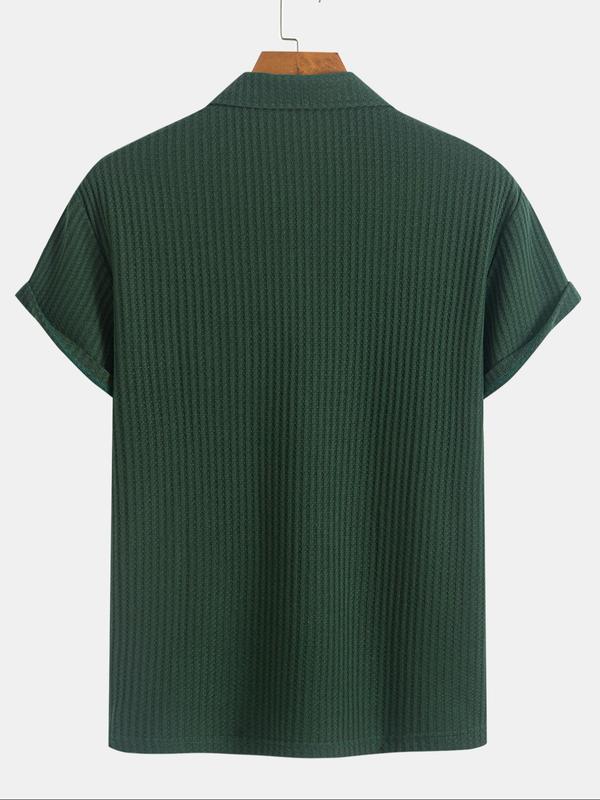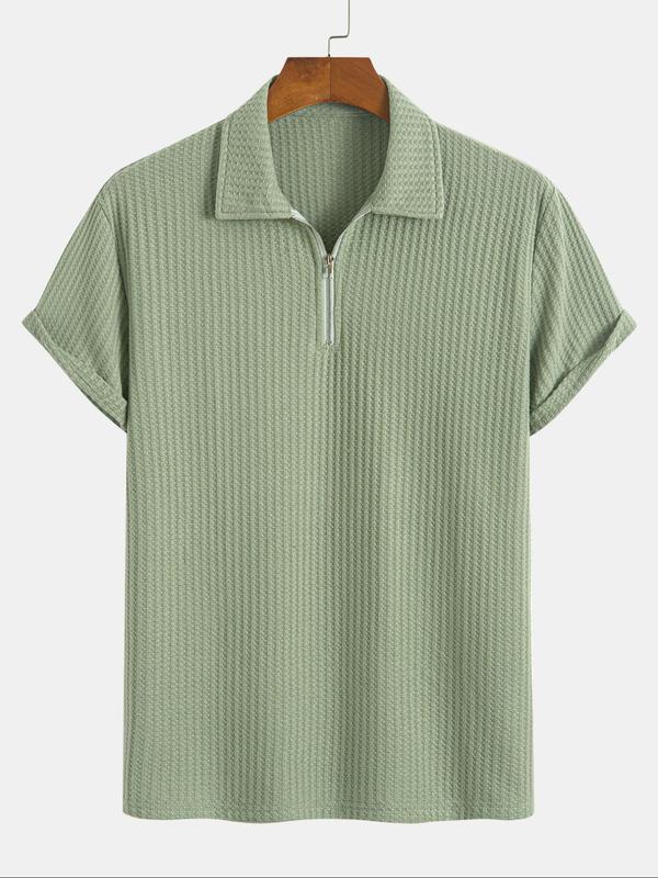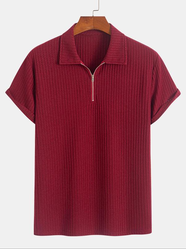 Men's Solid Ribbed Short Sleeve Knitted Polo Shirt, Solid Zipper Polo, Regular Fit Casual Breathable Comfy Top for Summer, Men's Clothes for Daily Wear