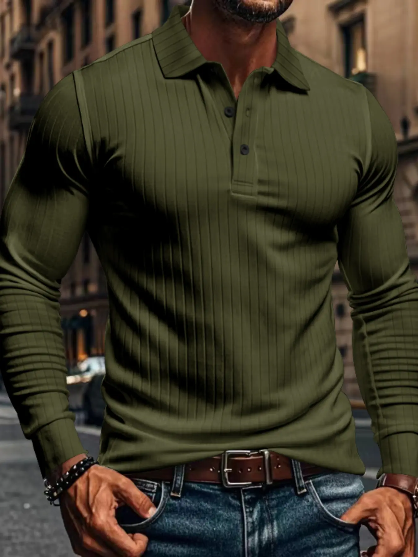 5. Men's Ribbed Texture Long Sleeve Polo Shirt, Comfortable Fit for Daily Wear, Stylish Design Suitable for Work & Leisure