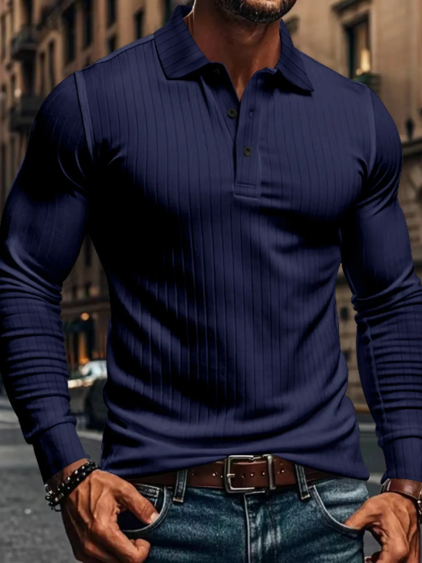Men's Ribbed Texture Long Sleeve Polo Shirt, Comfortable Fit for Daily Wear, Stylish Design Suitable for Work & Leisure