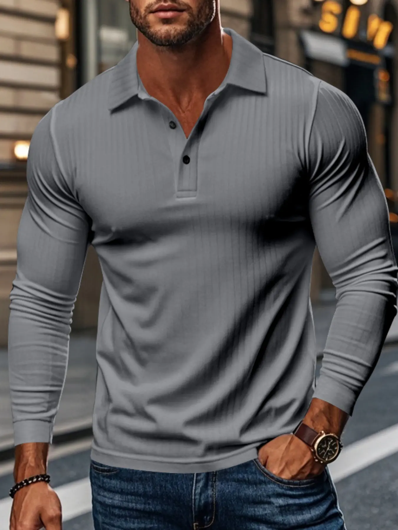 Men's Ribbed Texture Long Sleeve Polo Shirt, Comfortable Fit for Daily Wear, Stylish Design Suitable for Work & Leisure #slimmingshirts #mensstyledeals #golferoutfits #blousesfashion #jcrewrollneck #mensstylehack #menssolidcologne #mensstyle2025