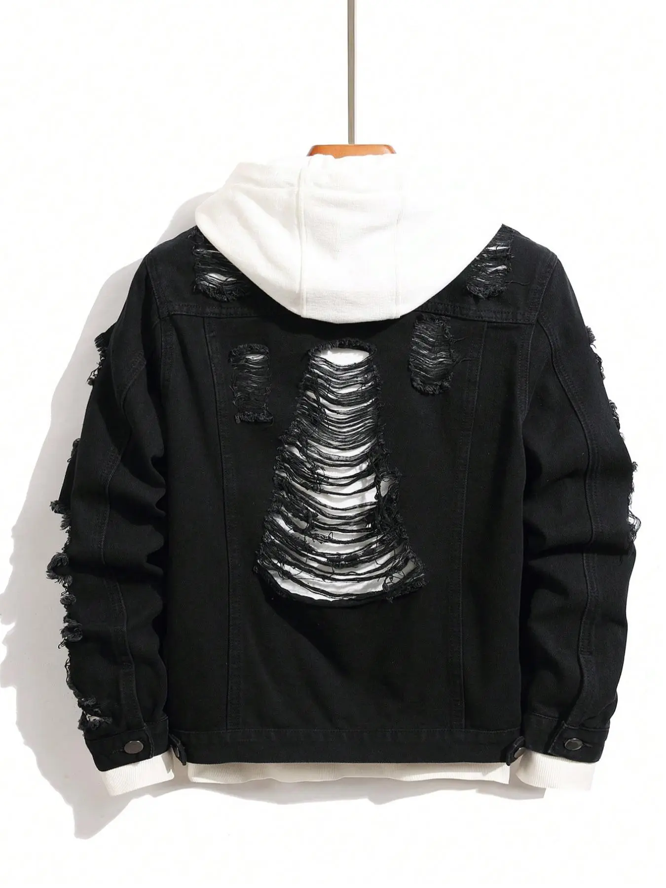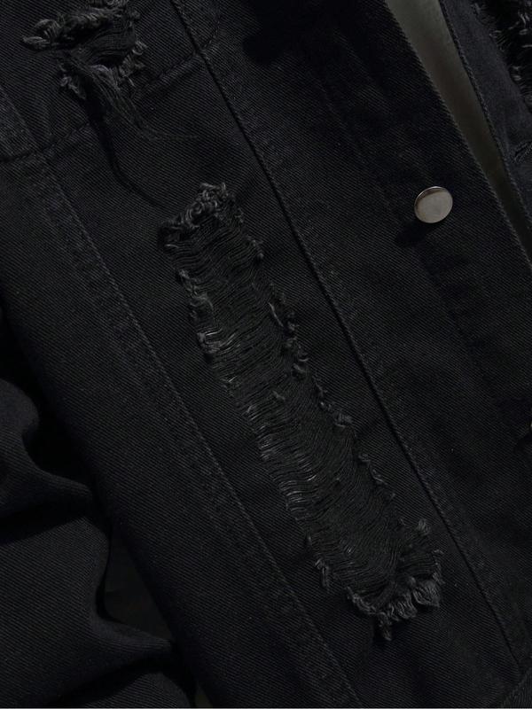 Men's Solid Ripped Design Button Down Denim Jacket, Regular Fit Casual Fashion Comfy Long Sleeve Outerwear Casual Fitted Jackets for Daily Wear, Men's Clothes for All Seasons, Coats