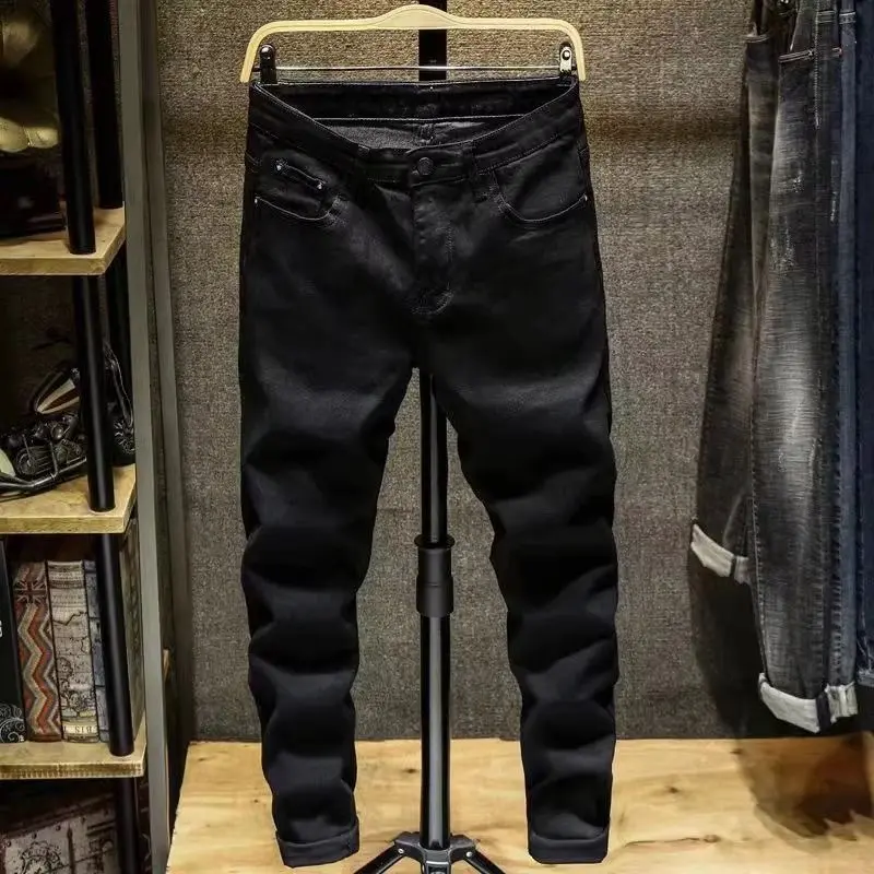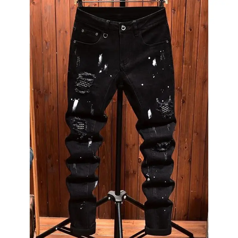 Ripped Jean 2025 Spring And Autumn Men's Casual Comfort Straight Leg High Quality Pants with Retro Ripped Black Stretch Denim Streetwear Shoe Outfit Menswear Trouser