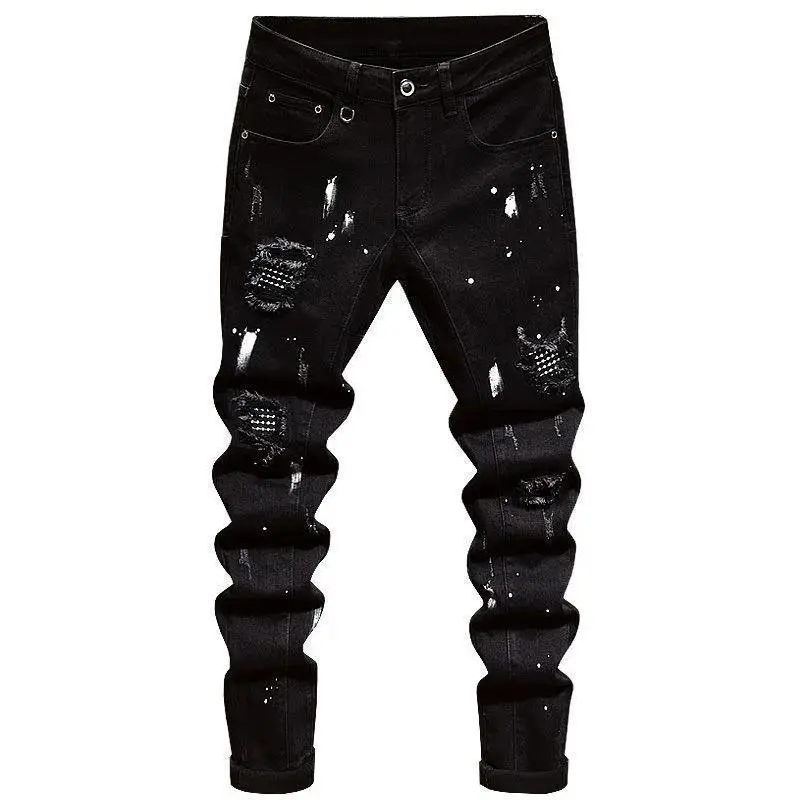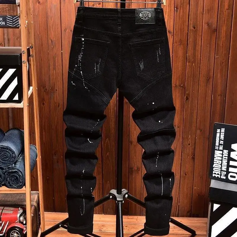 5. Ripped Jean 2025 Spring And Autumn Men's Casual Comfort Straight Leg High Quality Pants with Retro Ripped Black Stretch Denim Streetwear Shoe Outfit Menswear Trouser