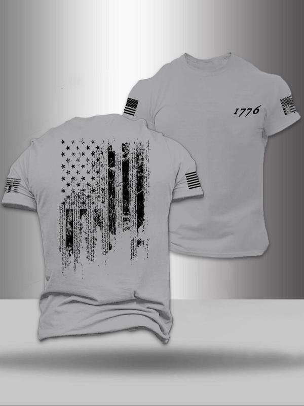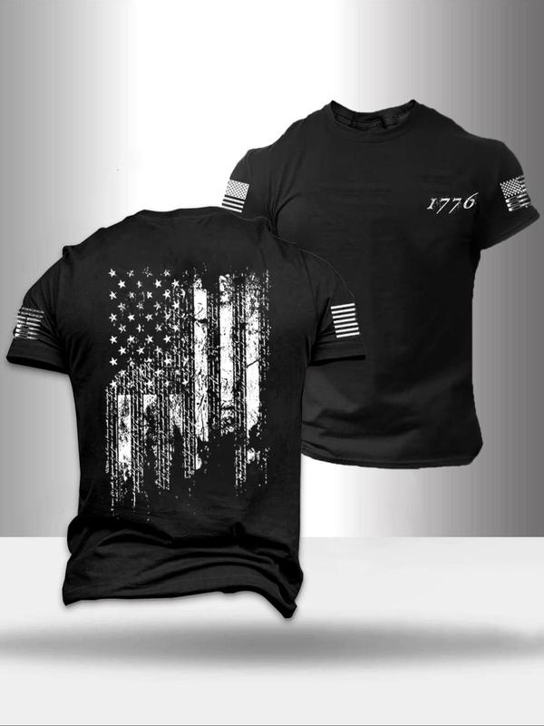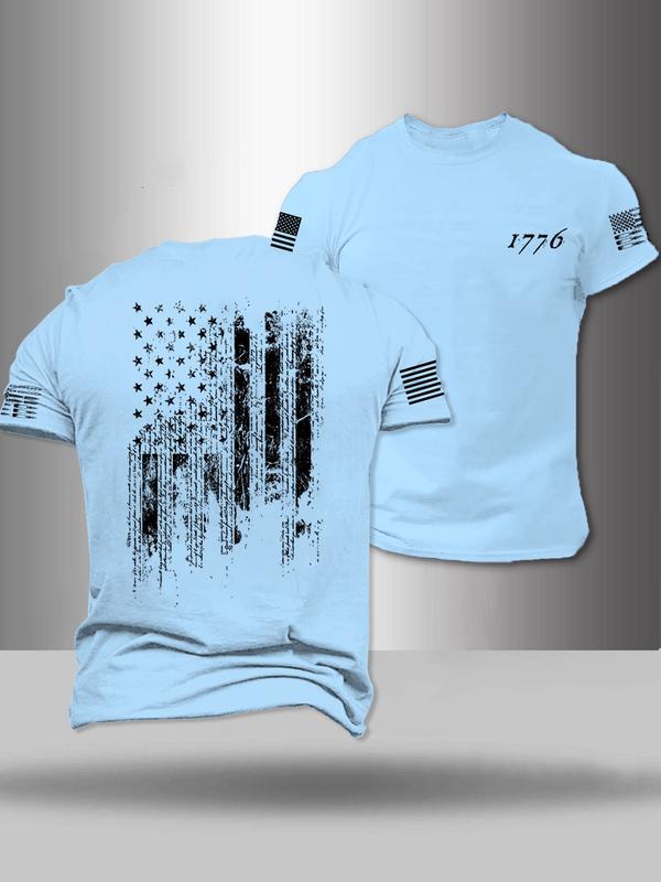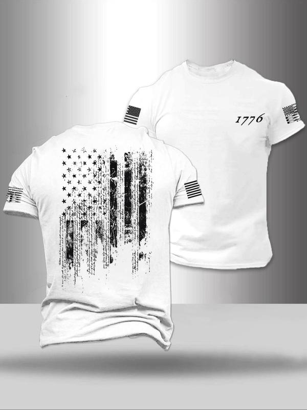 Men's American Flag Print Round Neck Tee, Regular Fit Casual Short Sleeve Crew Neck T-Shirt for Summer, Fashion Men's Top for Daily Wear