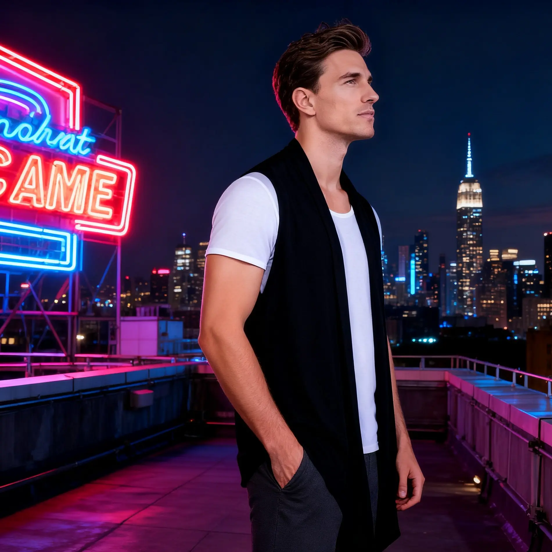 This sleeveless cardigan pairs effortlessly with various tops and bottoms. Ideal for summer, it complements t-shirts or tank tops. Suitable for casual outings, Sunday lunch, dating, parties, and hip hop events. Show off your fashion smarts with this urban style piece.