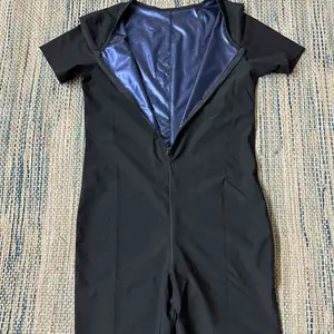 This sleek black sweat suit is made with heat-trapping, stretchable fabric that works overtime. The inner blue lining turns up the burn—making you sweat in places you didn’t know existed. Flexible, stylish, and intense—it’s a full-body workout boost!