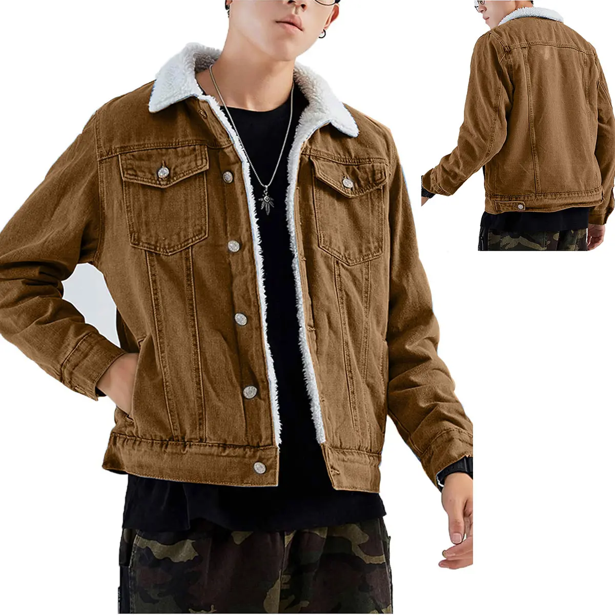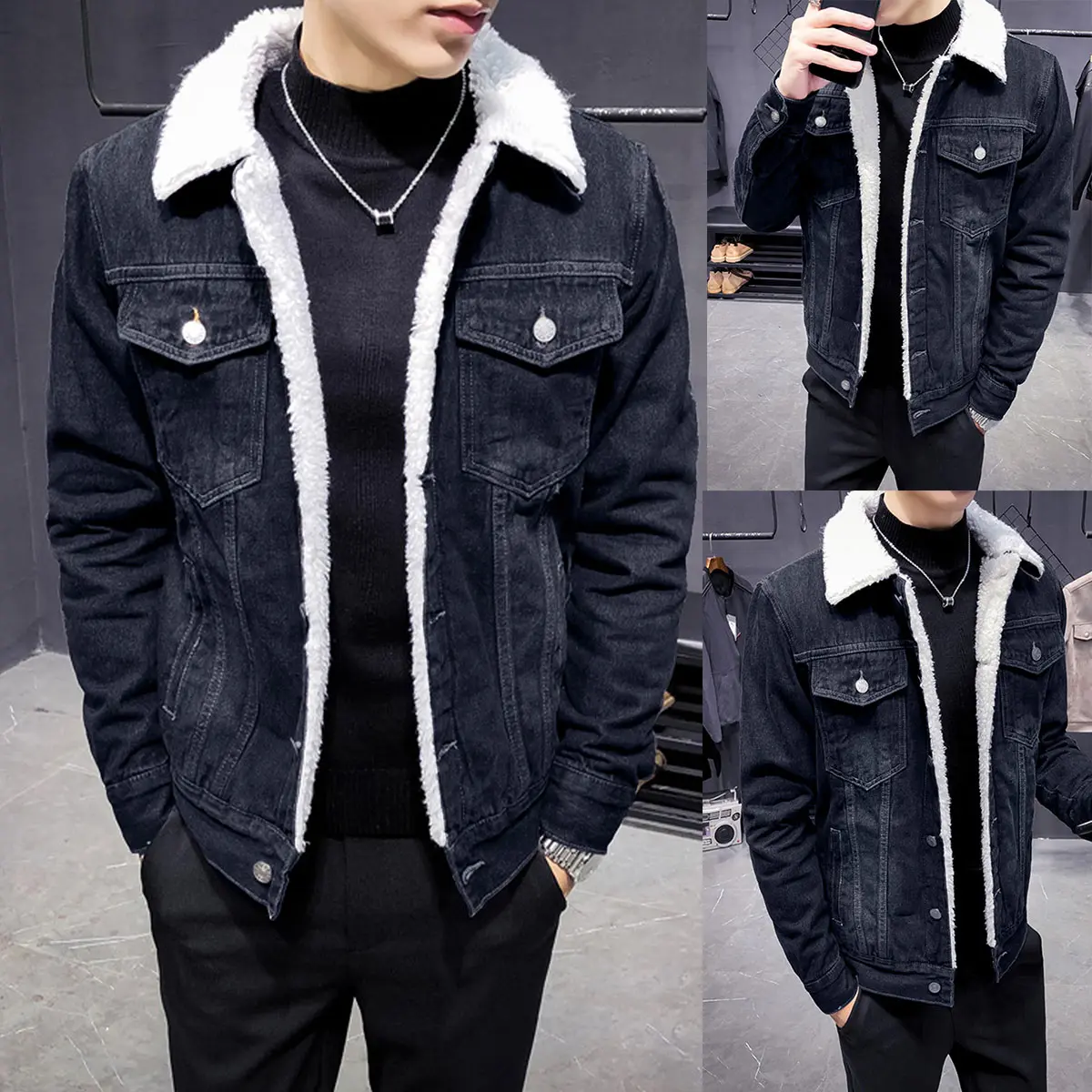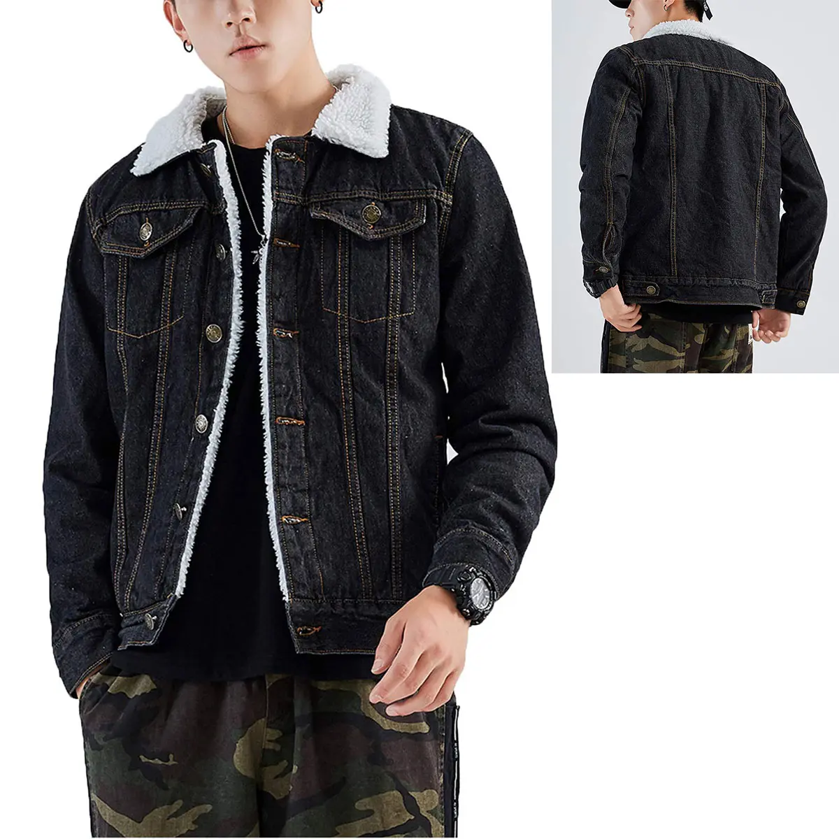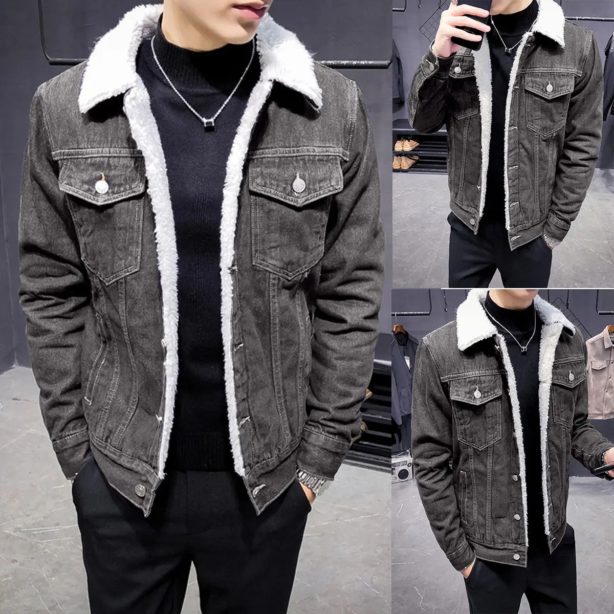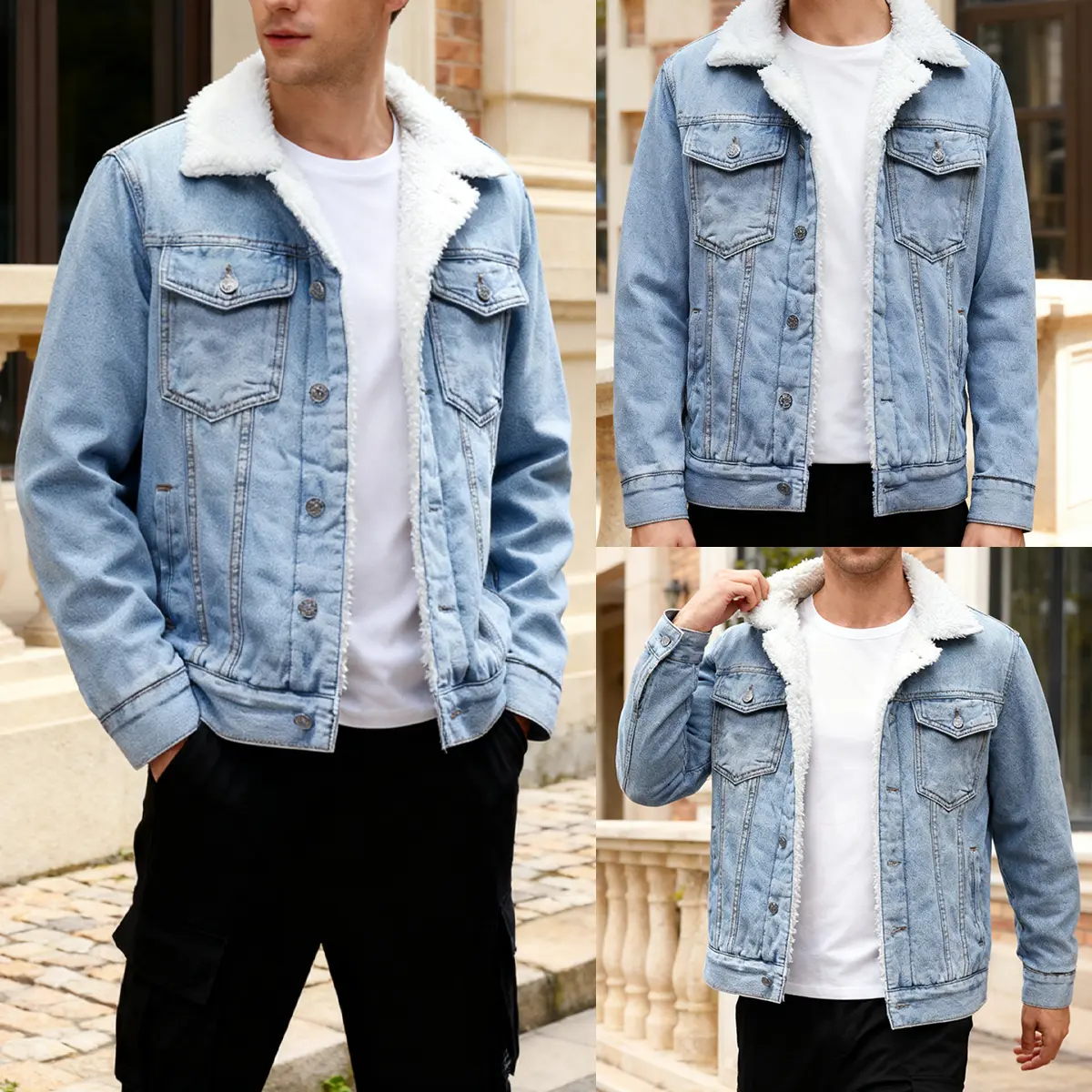 This jacket is perfect!!! Sherpa all the way down the sleeves, I bought the brown one and I love it!! Nice quality denim material, beautiful Sherpa on the inside. You can’t beat the price either!! They fit true to size in 6’1 200lbs and I bought a large. Fits perfectly