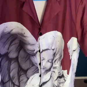 【Unique Angel Print】: Featuring an eye-catching angel print, this shirt stands out with a distinctive artistic flair.