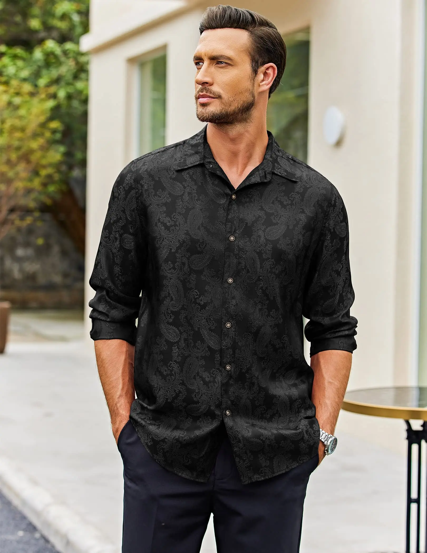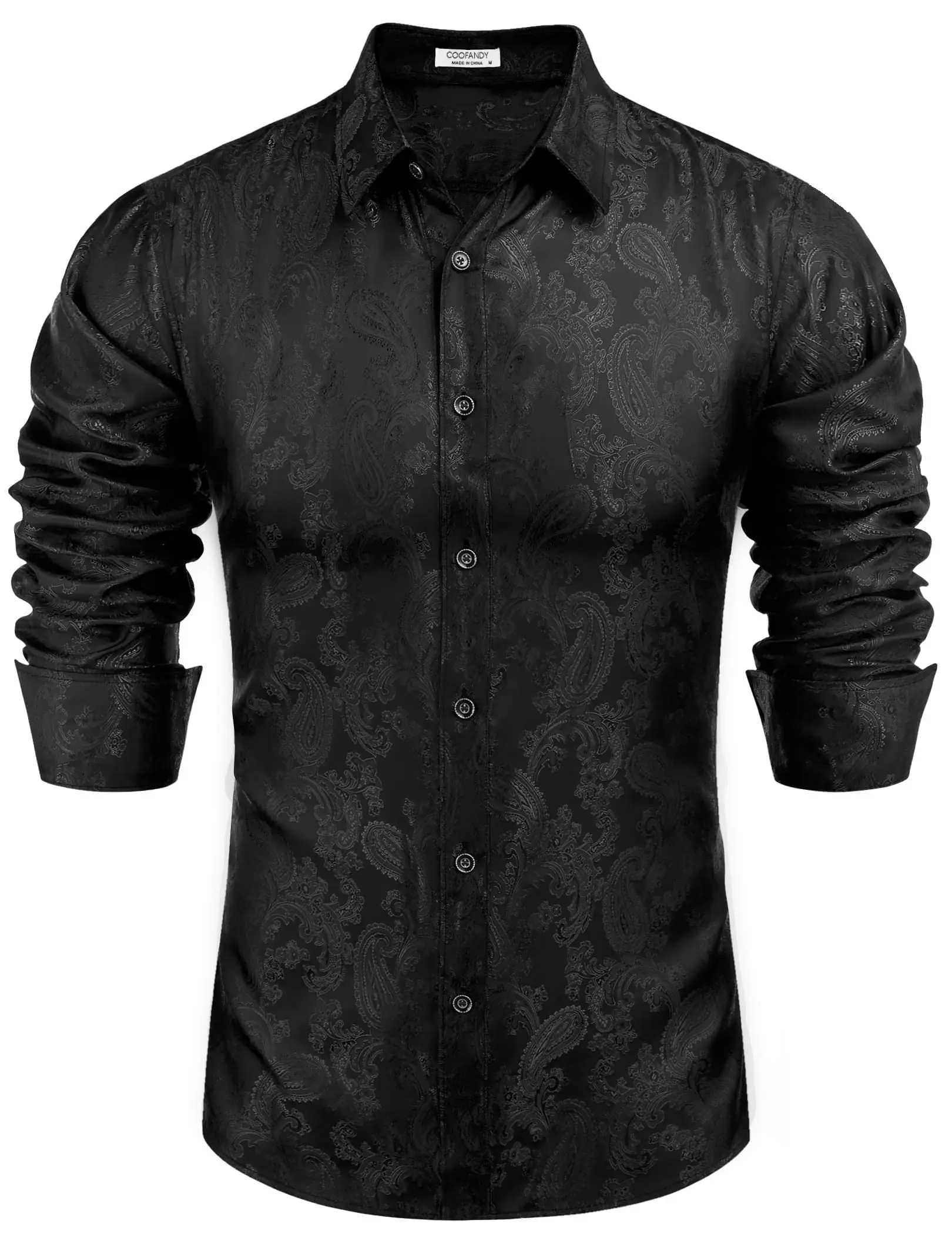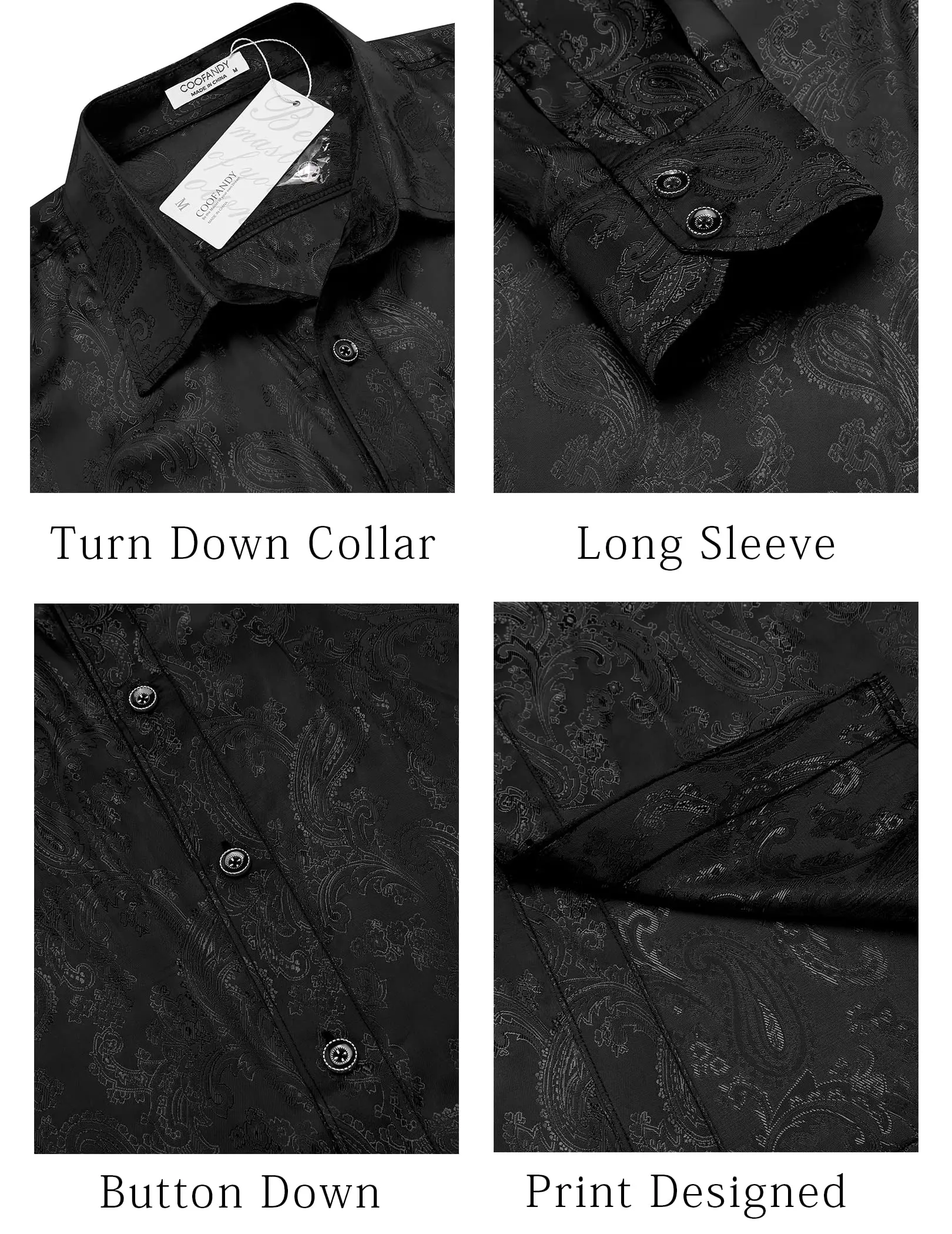 ·FEATURE: Mens luxury shirt designed with shining paisley print, turn-down collar, button down and long sleeve; it combines fashion and traditional elements, silky like terylene and stylish