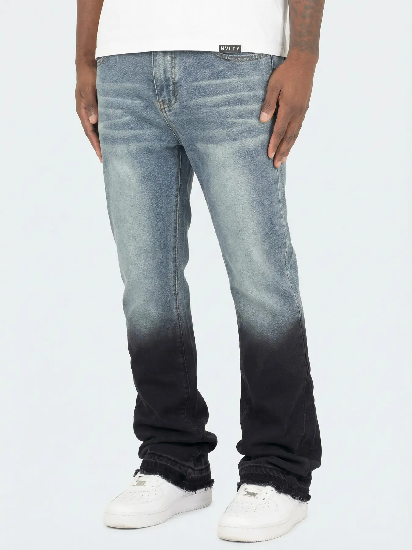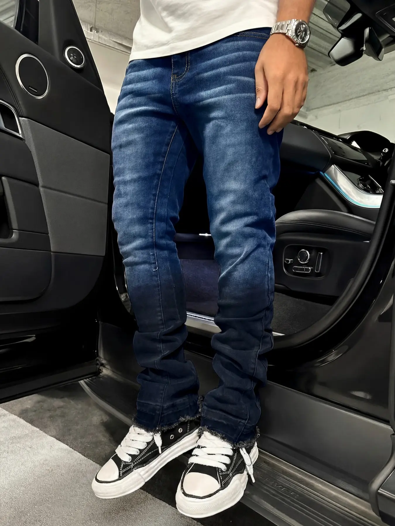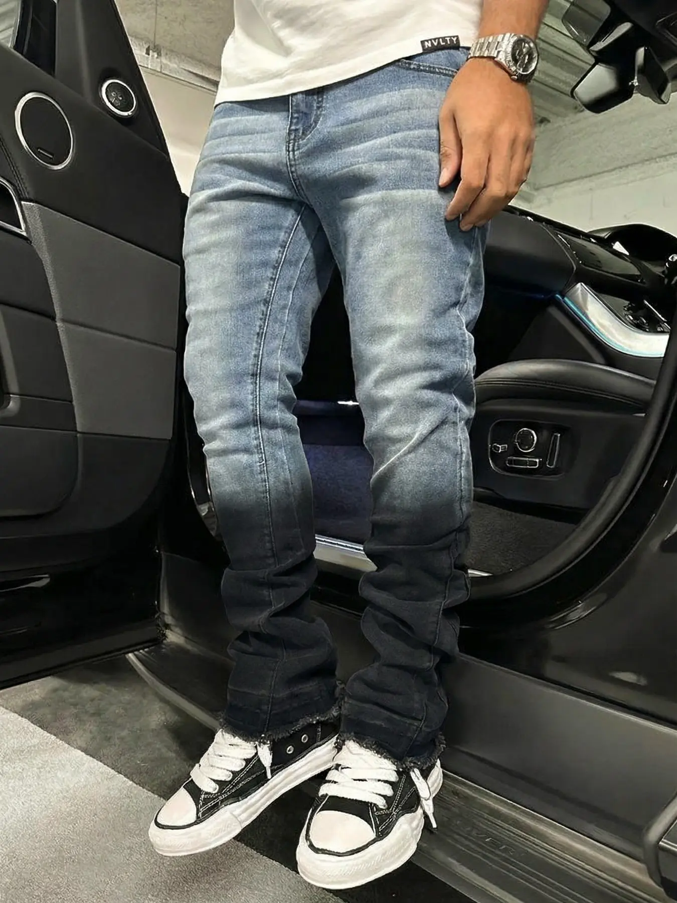 This gradient denim is chef’s kiss💥! Distressed hem + slim fit, perfect with white kicks😎#valentinesdaygift #cool #ootd #jeans #mensfashion