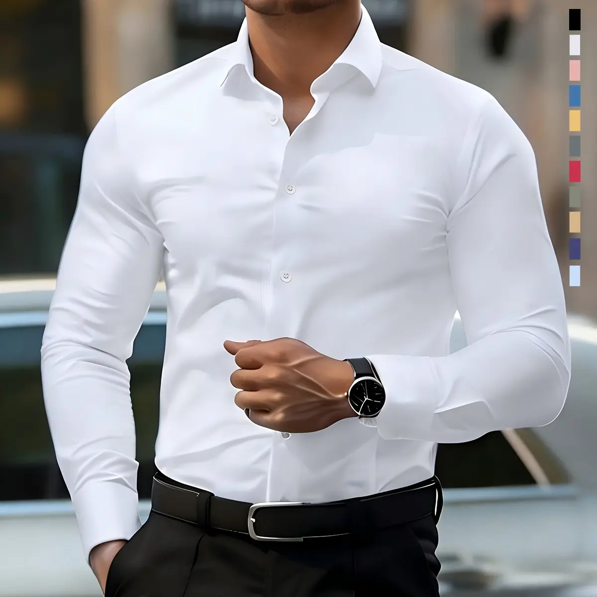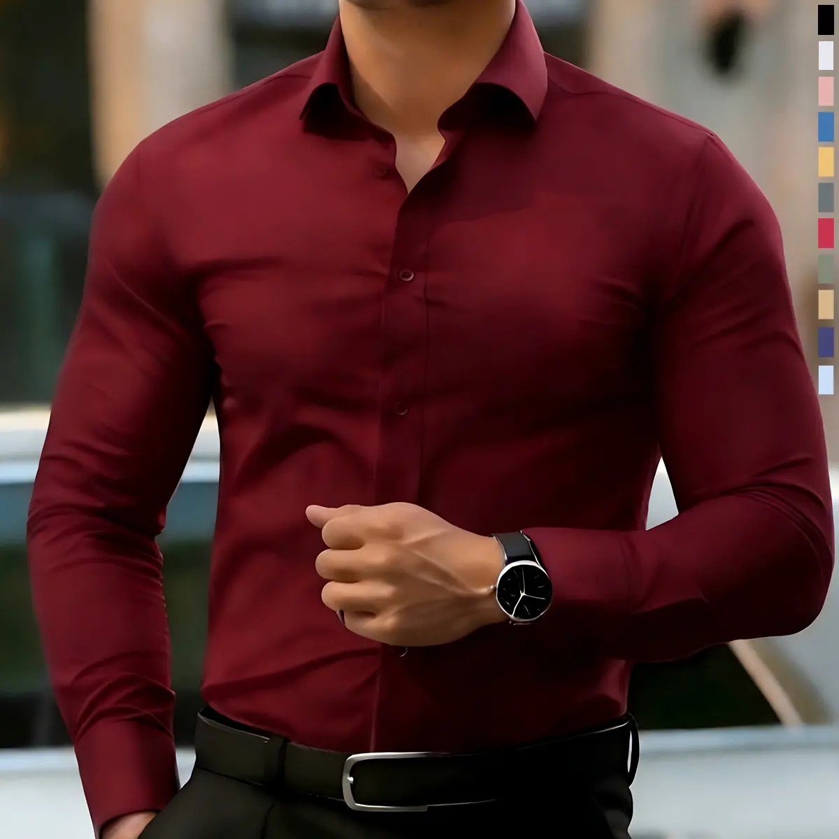 Excelente calidad de la tela la caida del corte me quedo bien gracias