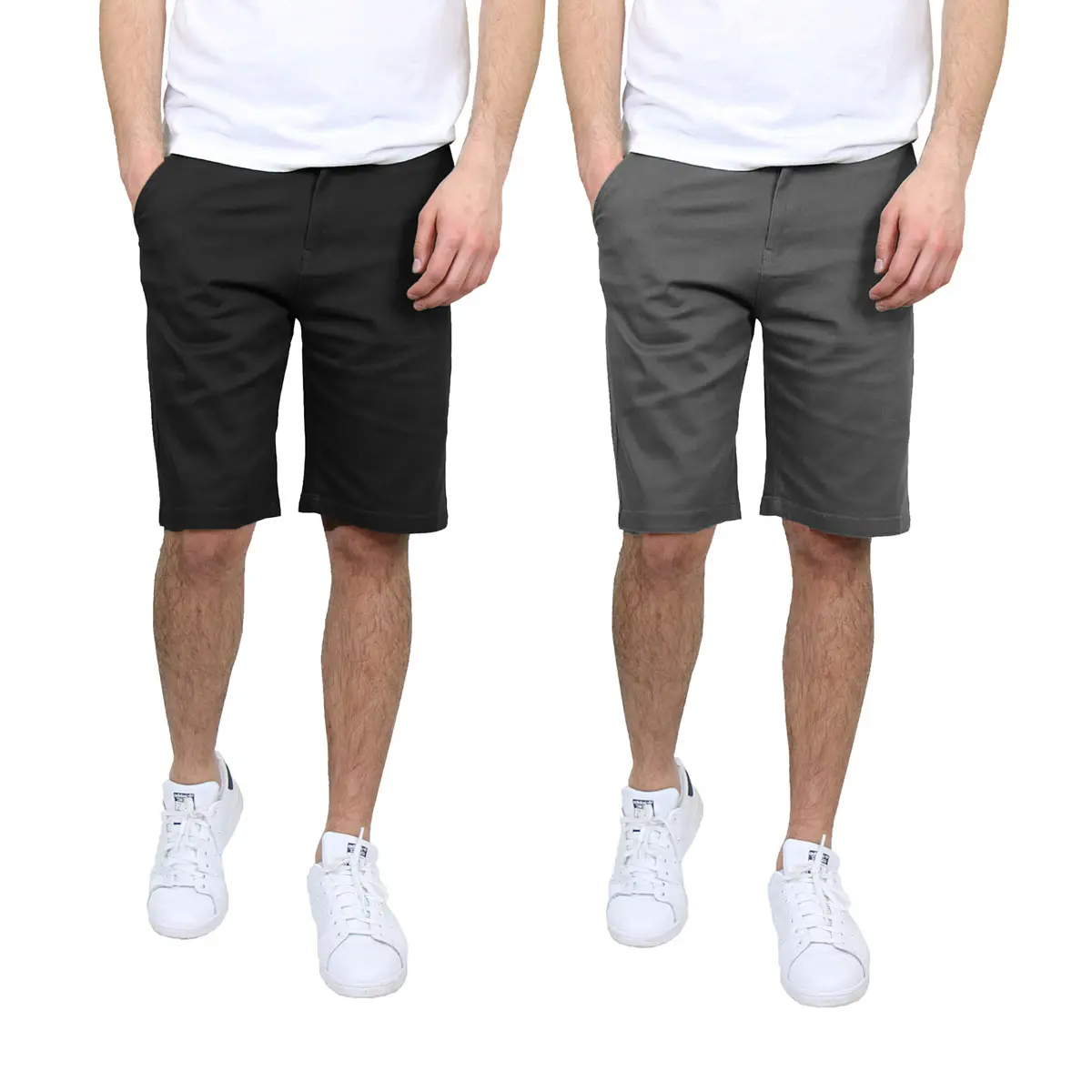 Upgrade your summer wardrobe with our Men's 2-Pack 5-Pocket Flat-Front Slim-Fit Stretch Chino Shorts. Crafted with stretch cotton fabric, these shorts combine both comfort and style to keep you looking and feeling great all day long.