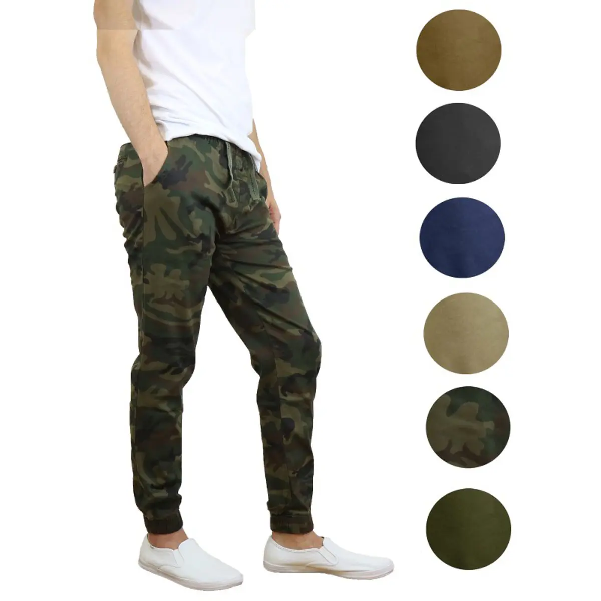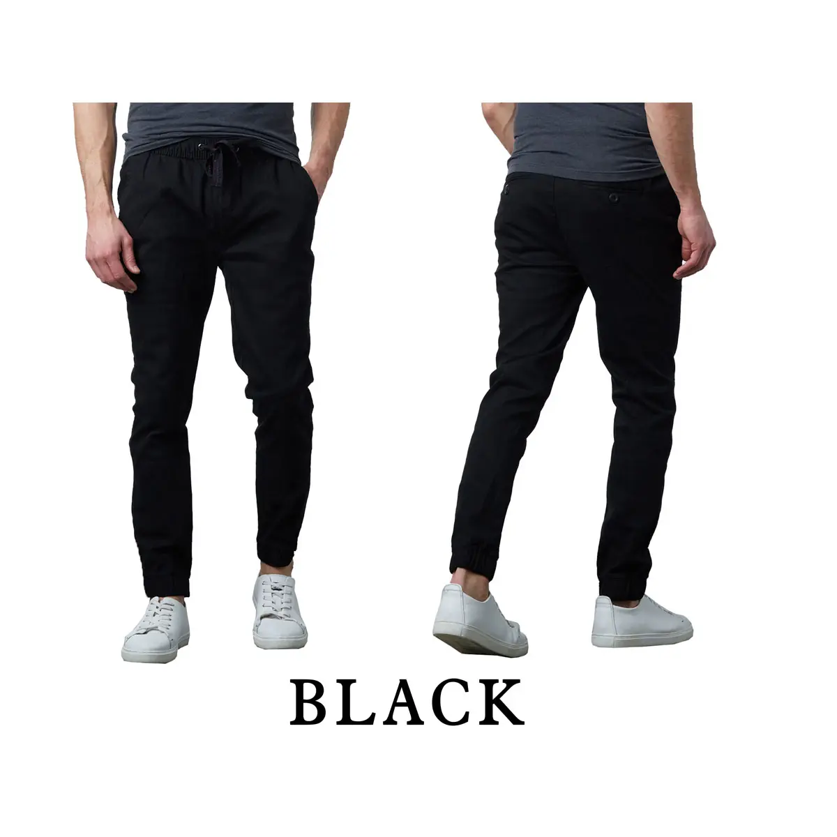 Men’s Slim-Fit Twill Jogger Pants Cotton Plain Menswear Pocket Slimfit Trouser