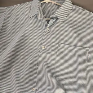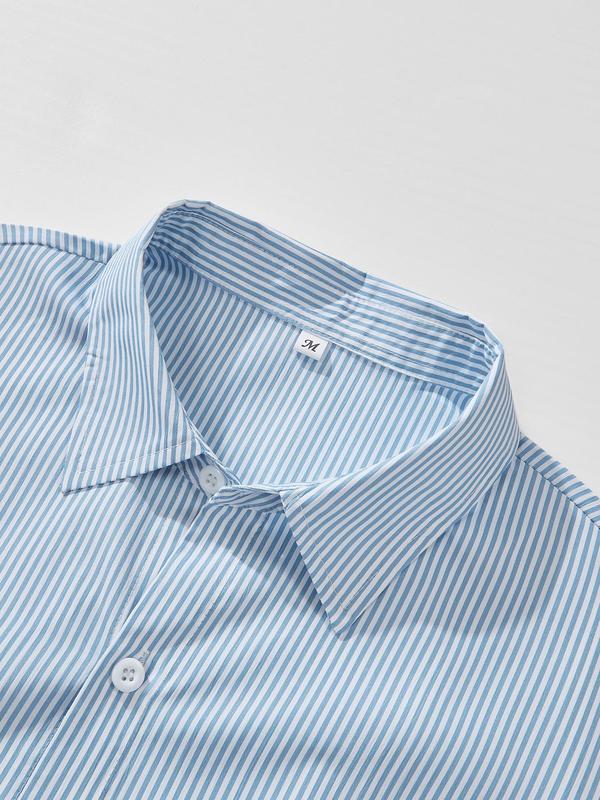 Men's Slim Fit Woven Striped Short Sleeve Casual Blue Shirt