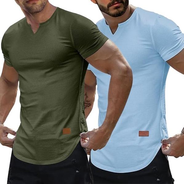 Love the shirts. I would give it a five star review if the vneck part of the shirt would come down a little longer. I do like them they fit tight. If you are built they fit perfect.
